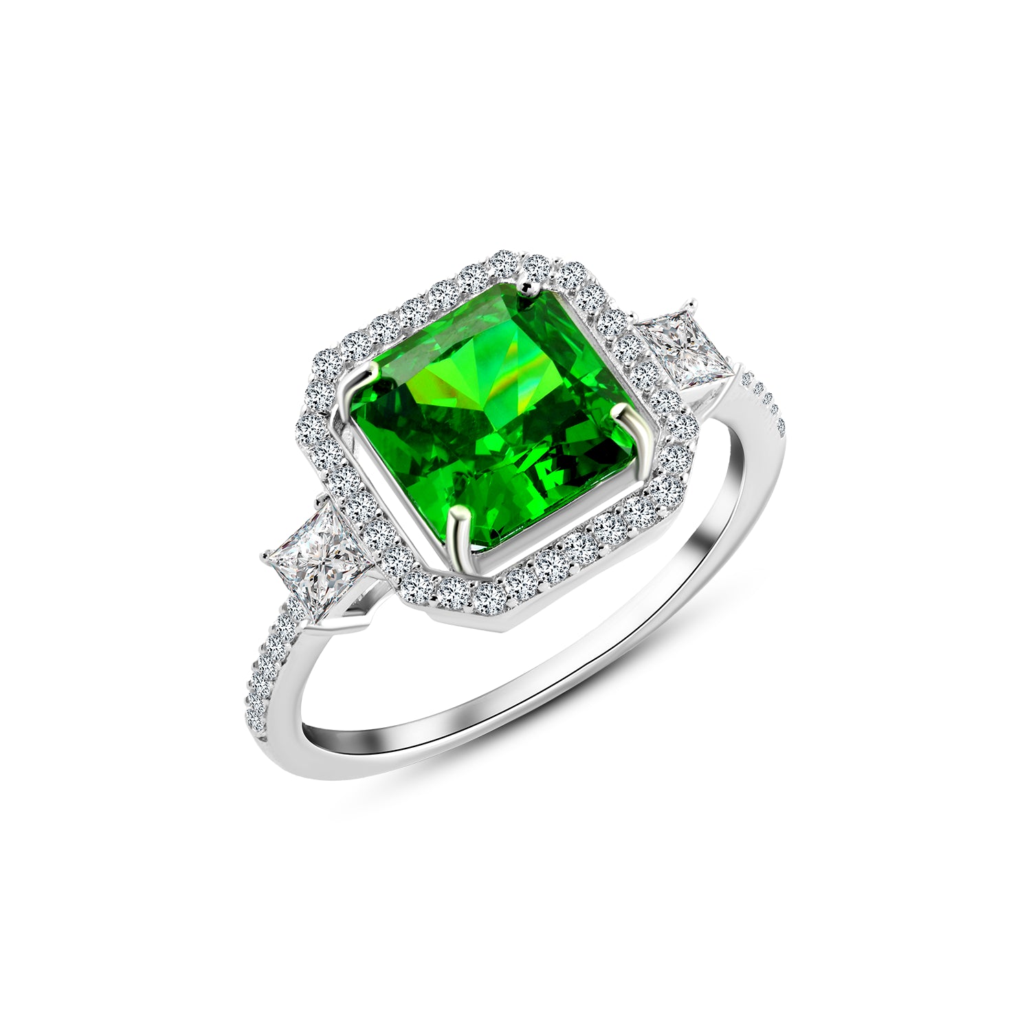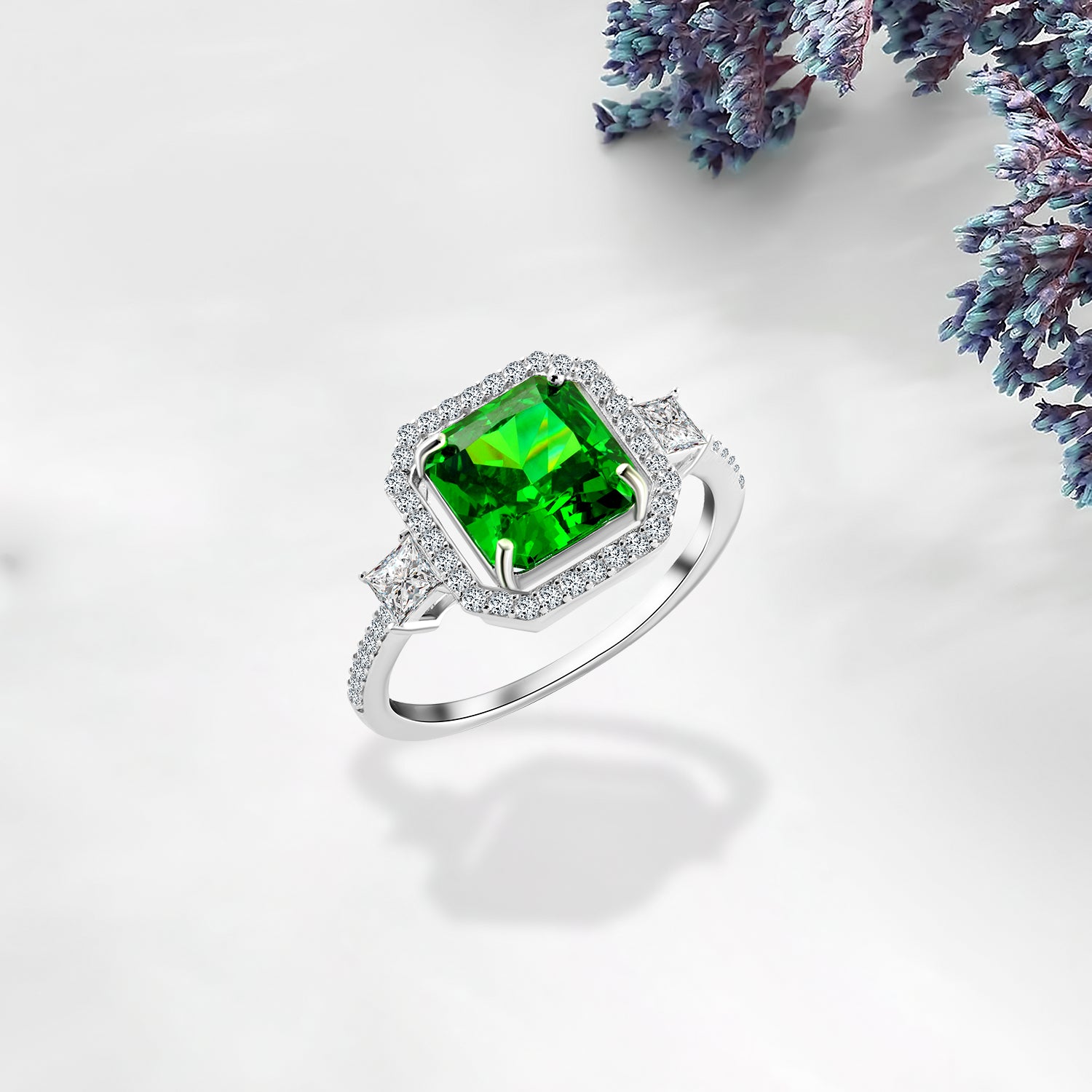 خاتم فضة عيار 925 بفص زركون أخضر ملكي