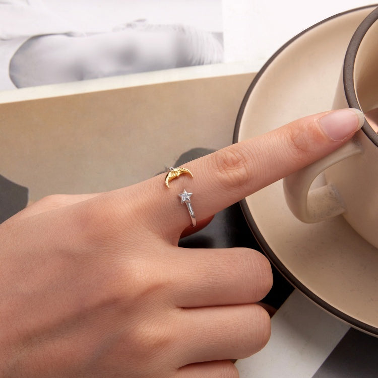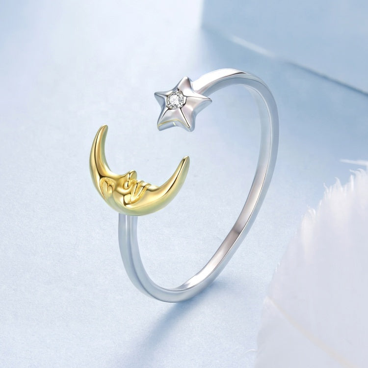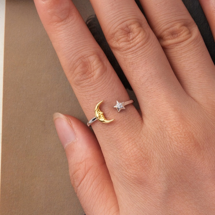 خاتم فضة عيار 925 تصميم هلال ونجمة