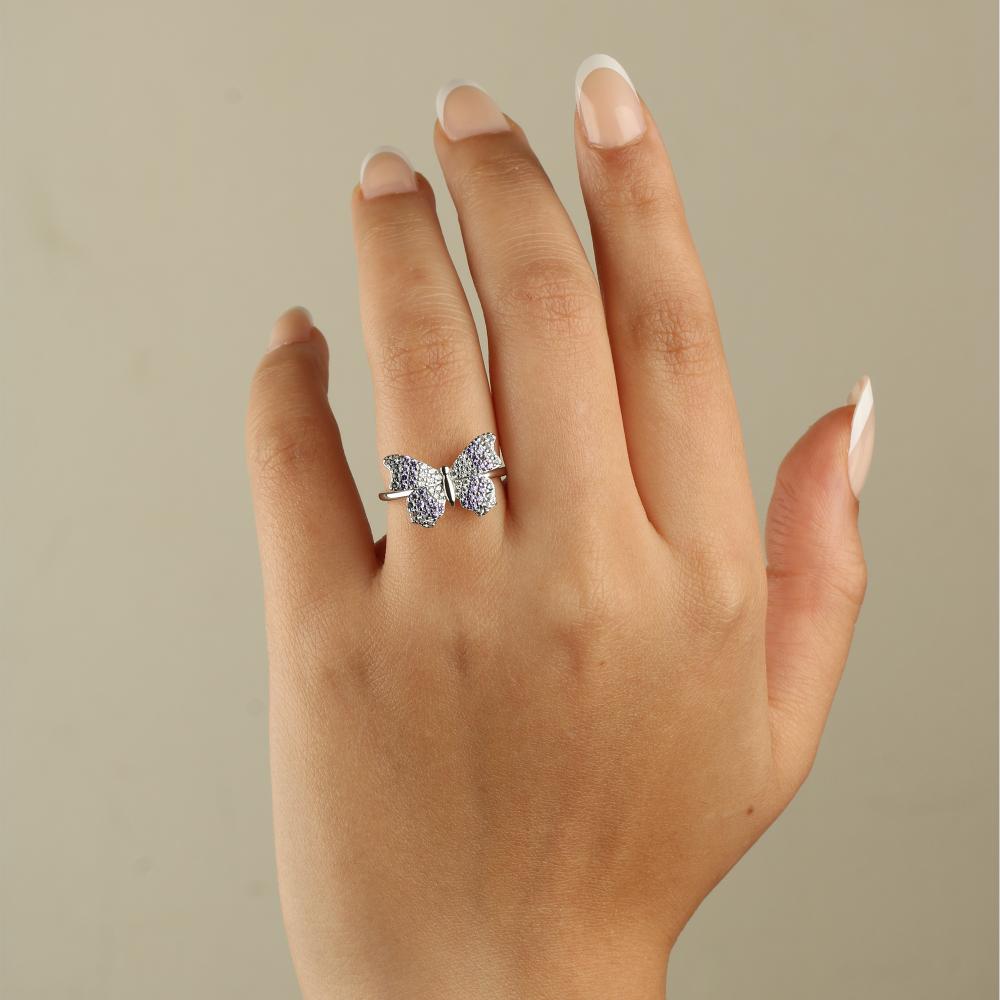خاتم فضة عيار 925 على شكل فراشة ملونه