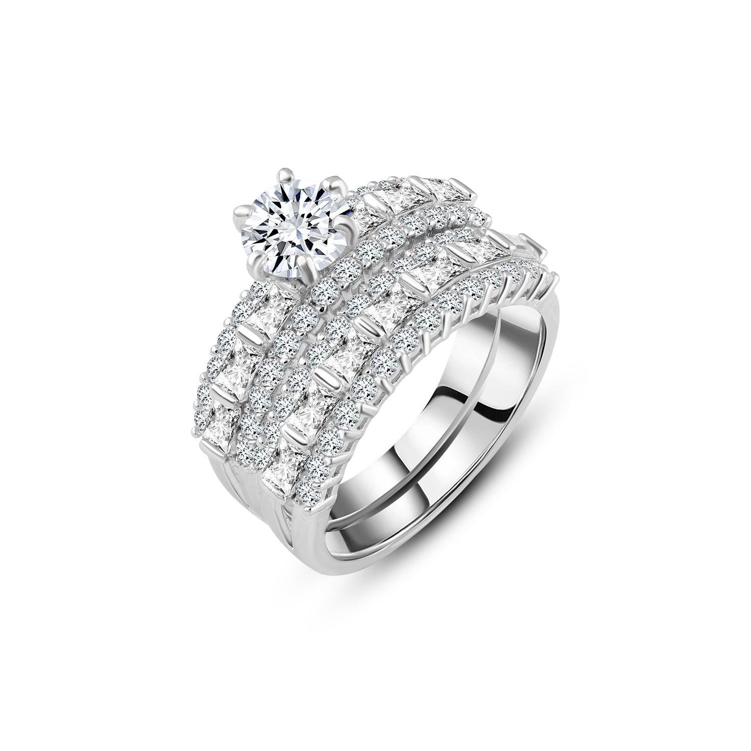 خاتم فضة عيار 925 ثلاثي الطبقات بفص دائري مرتفع وترصيع زركون دائري ومستطيل