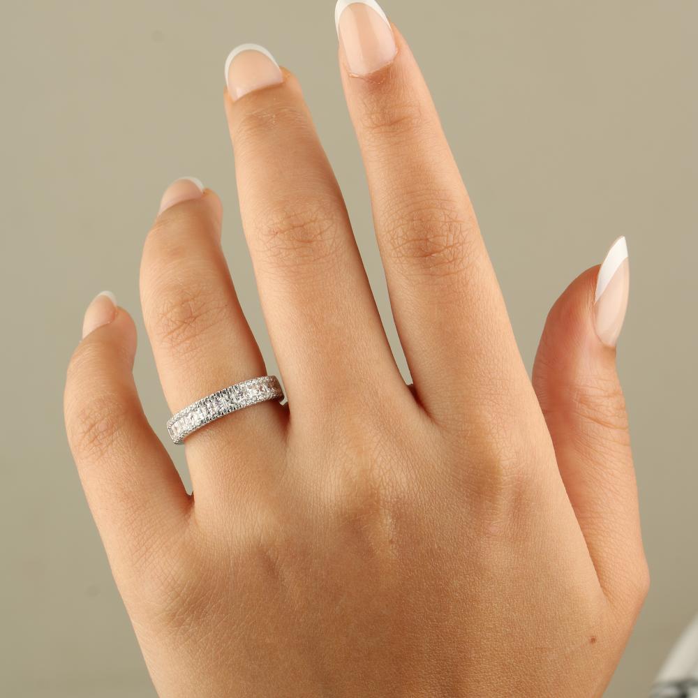 خاتم فضة كلاسيكي عيار 925 مرصع بفصوص براقة