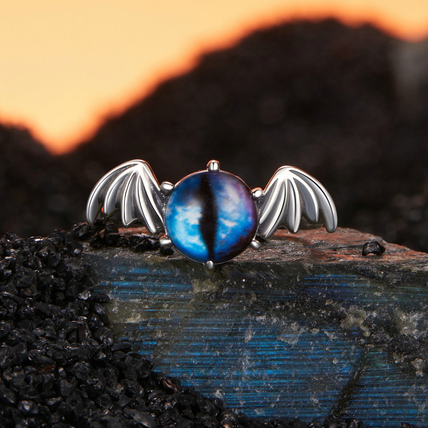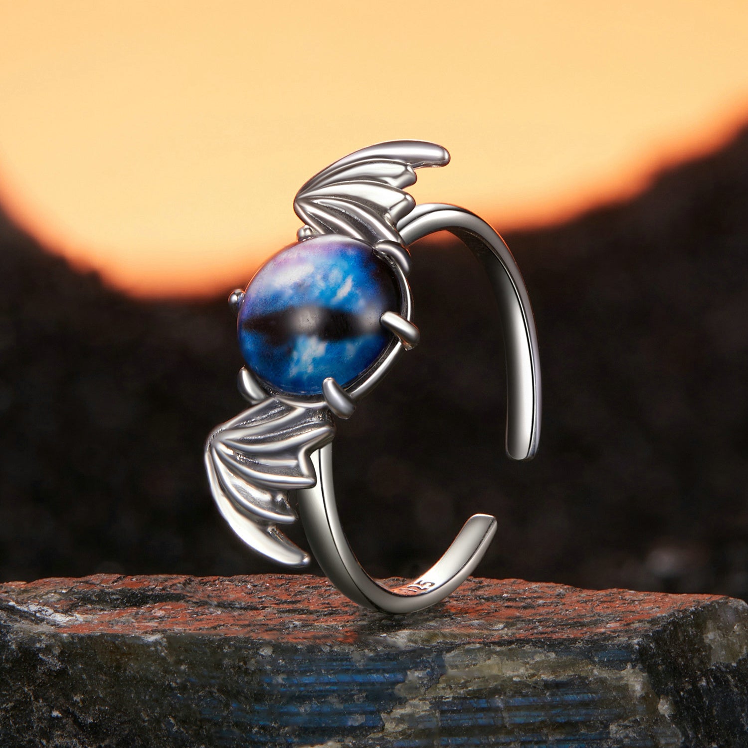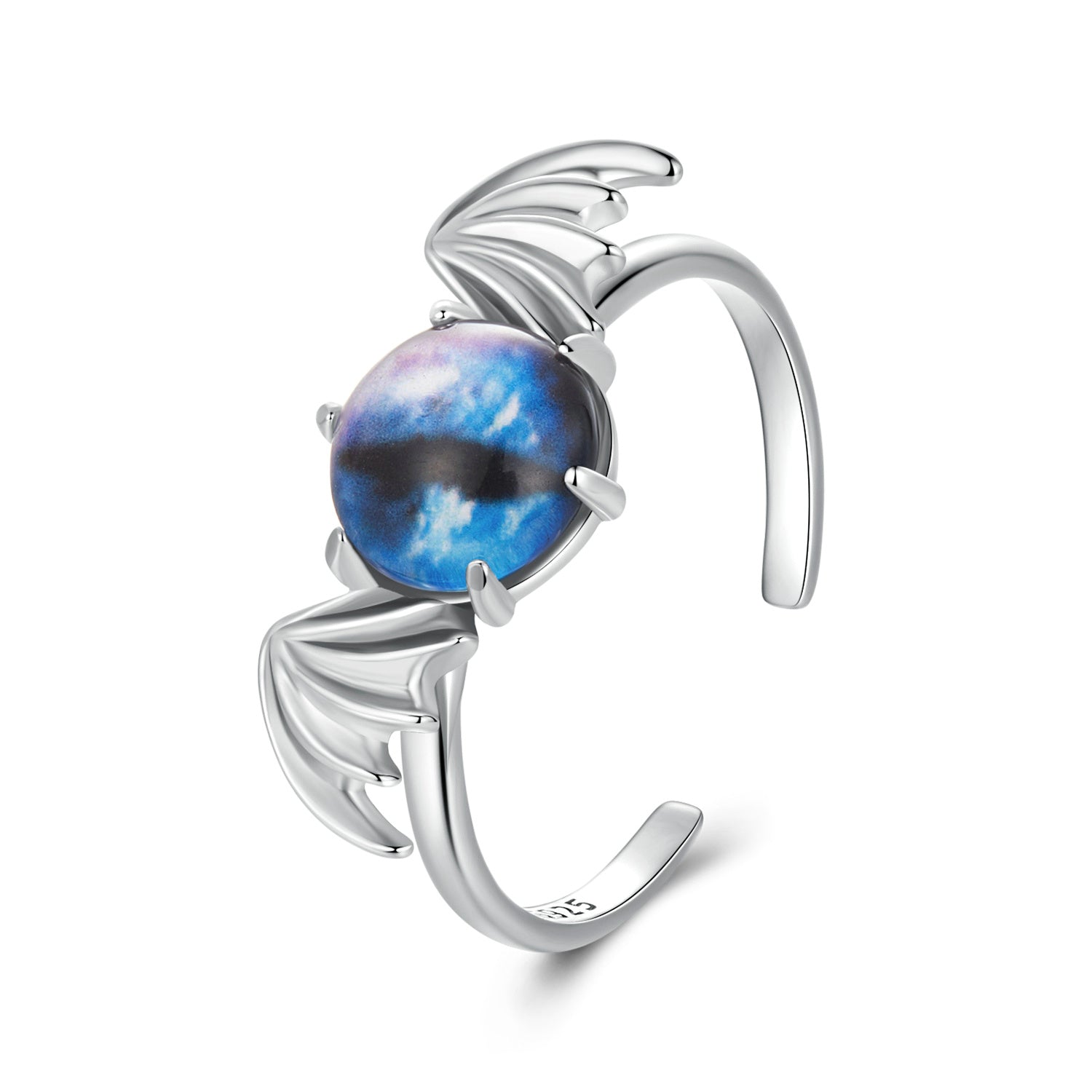 خاتم فضة 925 بتصميم أجنحة وفص أزرق