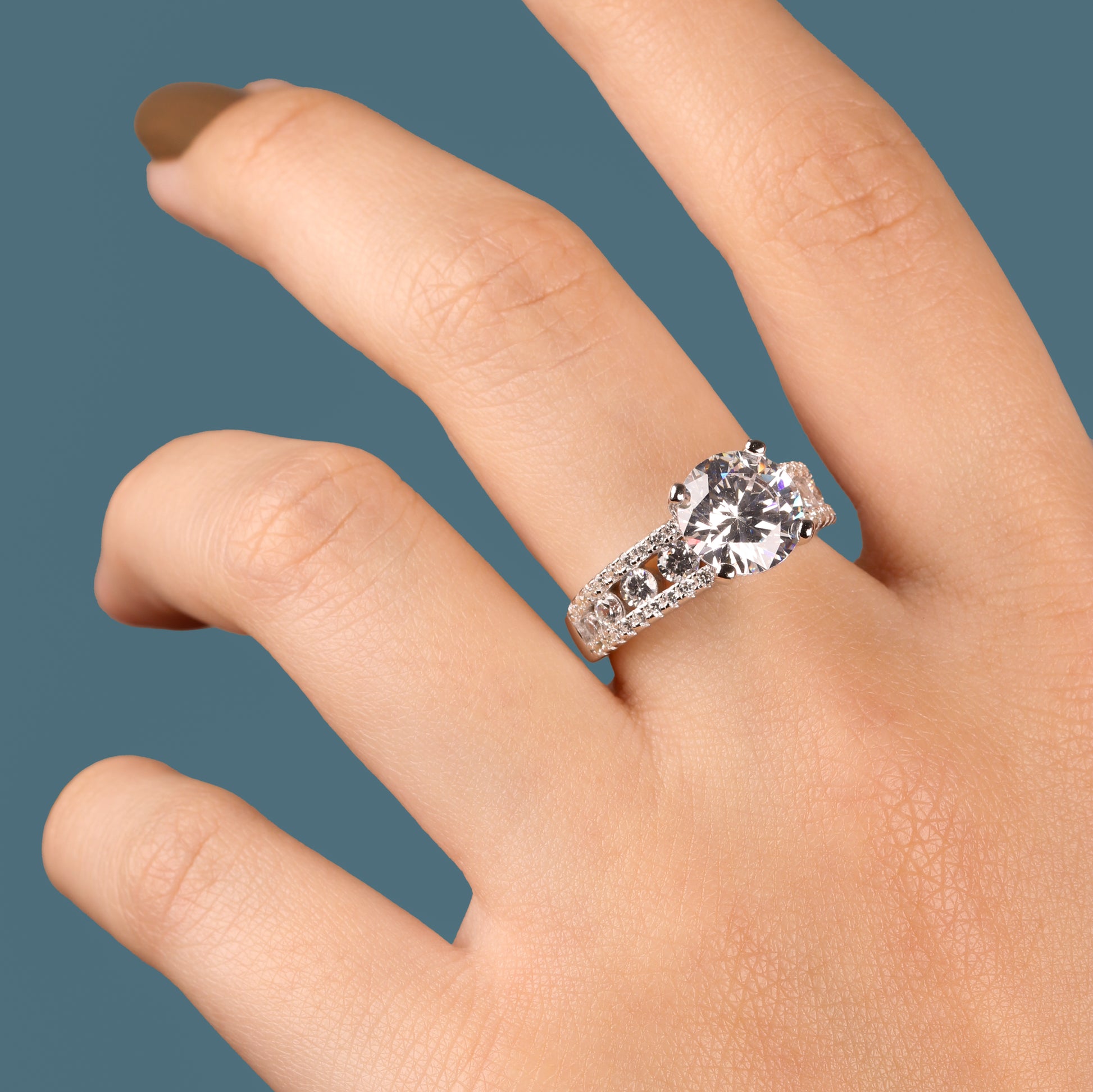 صُنع هذا الخاتم من فضة أصلية عيار 925 عالية الجودة، ويتميّز بحجر دائري كبير لامع يتوسط التصميم بإشراقة فاخرة، مع جوانب مفرغة مرصعة بزركون براق تضيف لمسة من العمق والتفرد.