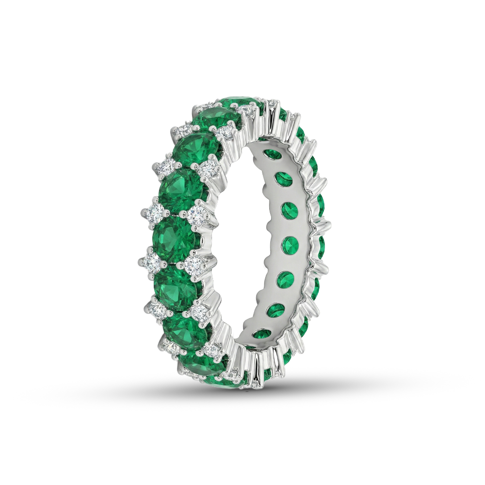 خاتم فضة 925 دائري مرصع بفصوص خضراء لامعة