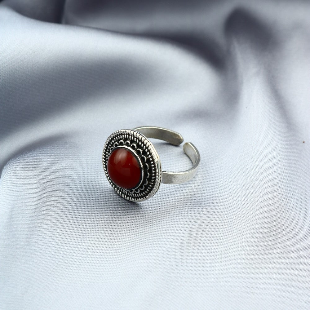 خاتم فضه دائري مصري حريمي عيار 925 متوج بحجر عقيق