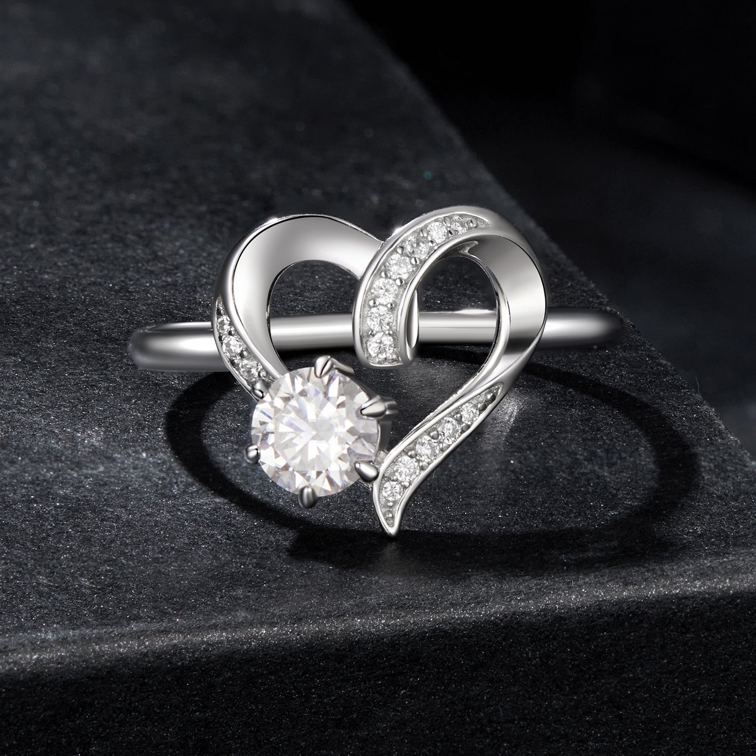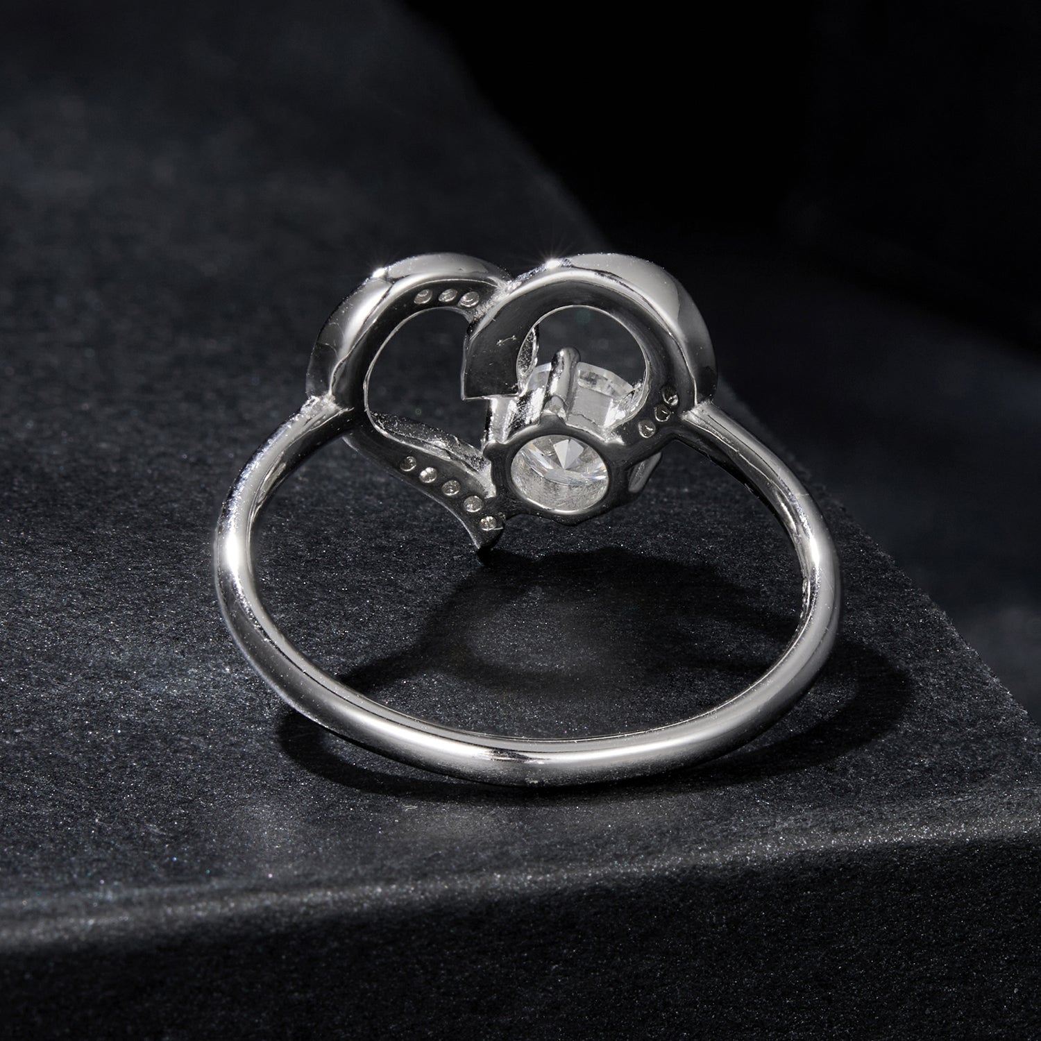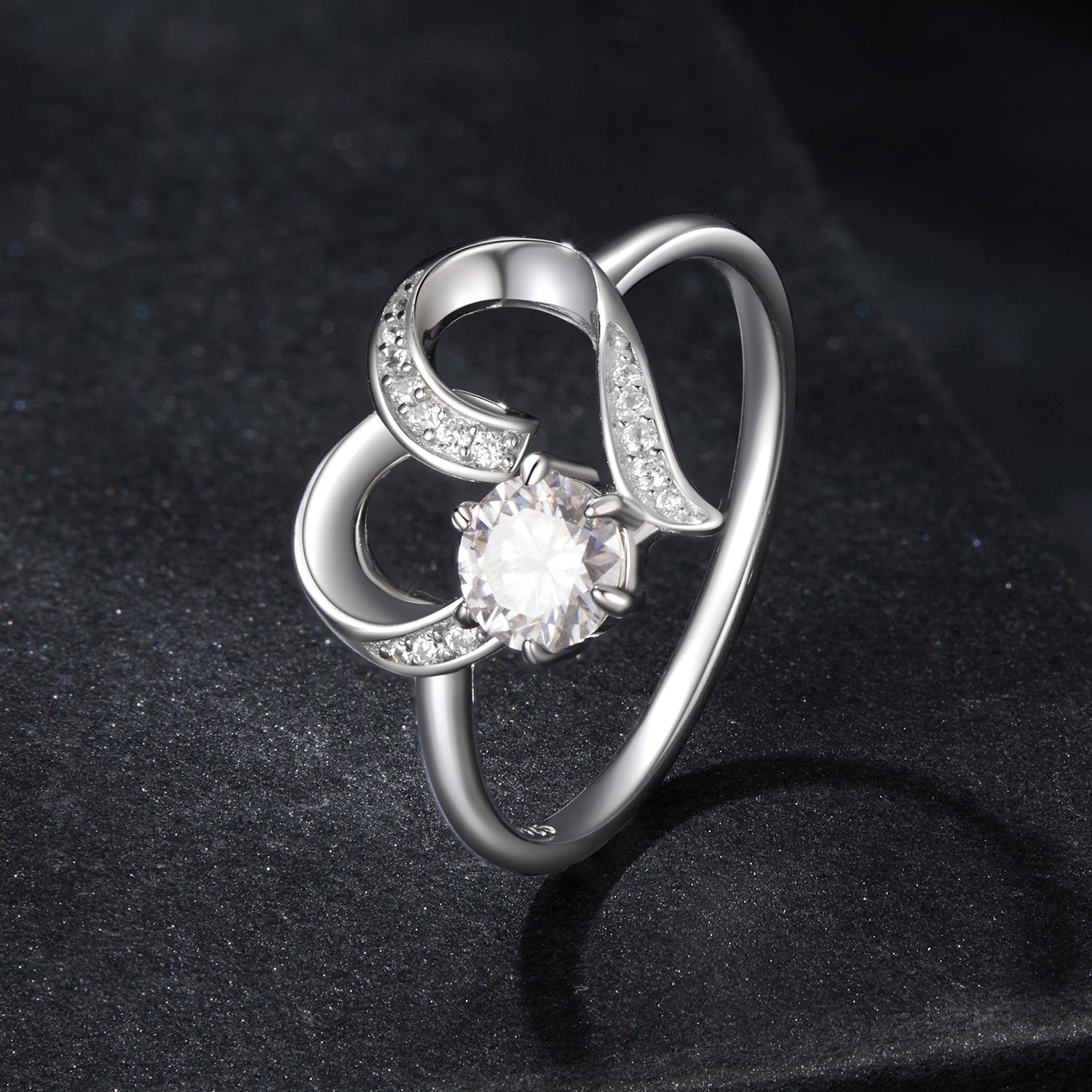 خاتم قلب فضه عيار 925 بحجر موزنايت