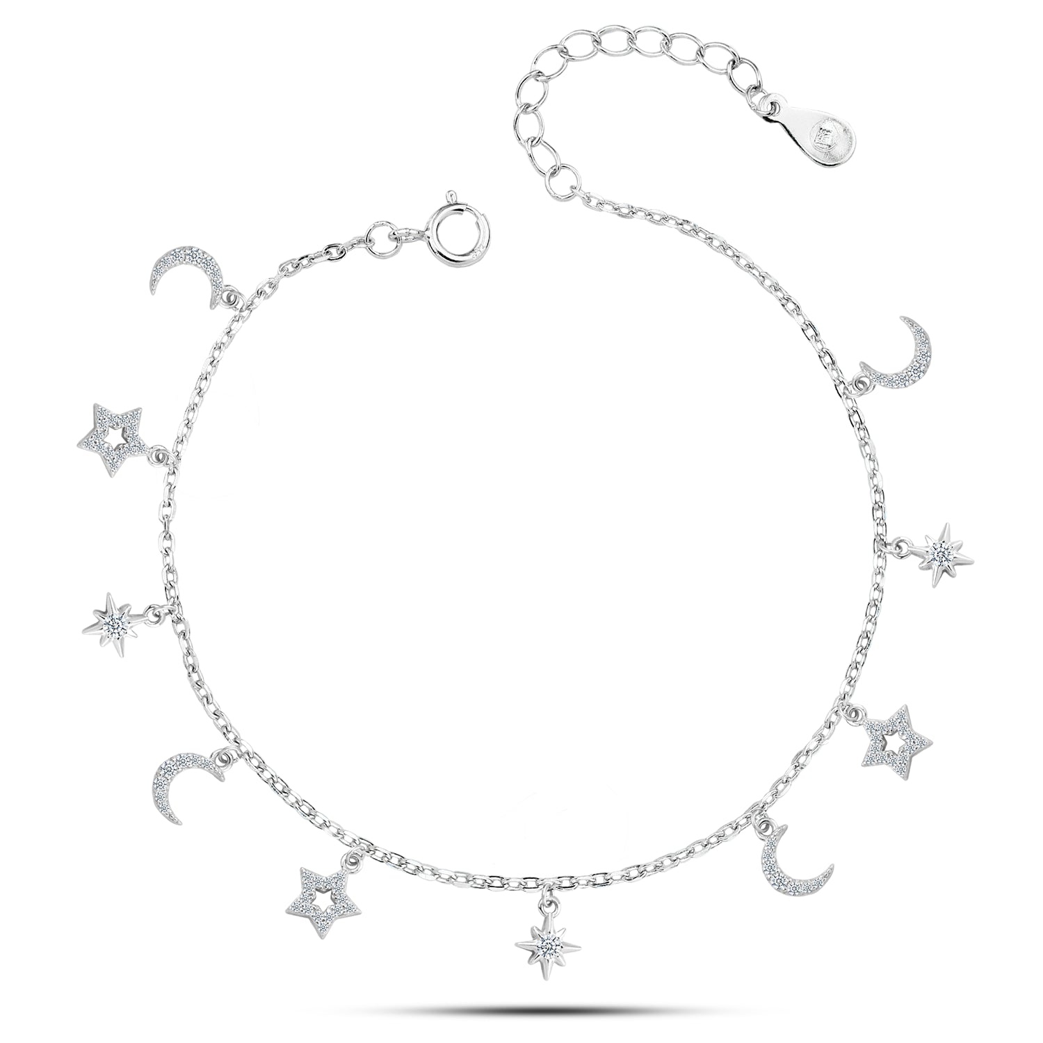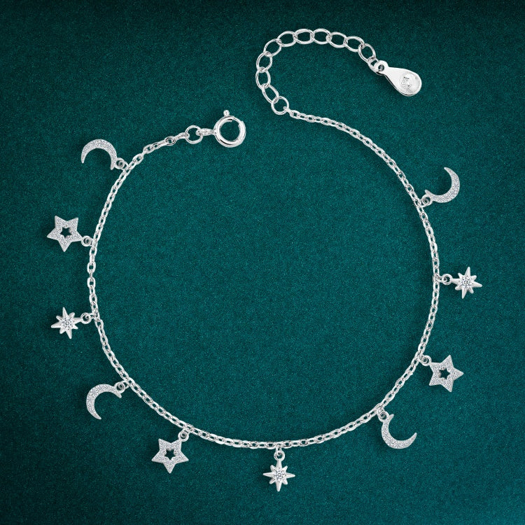 استوحي أناقتك من جمال السماء مع خلخال "سحر السماء" فضة عيار 925، المصمم ليجمع بين الرقة والفخامة في تفاصيل مستوحاة من القمر والنجوم.