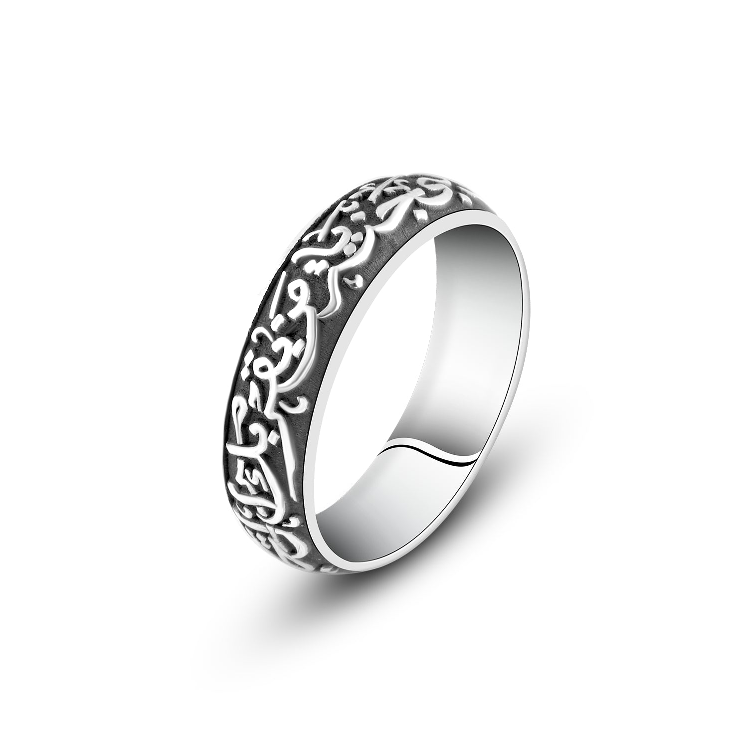 دبلة رجالي فضة عيار 925 مزخرفة بتصميم عربي