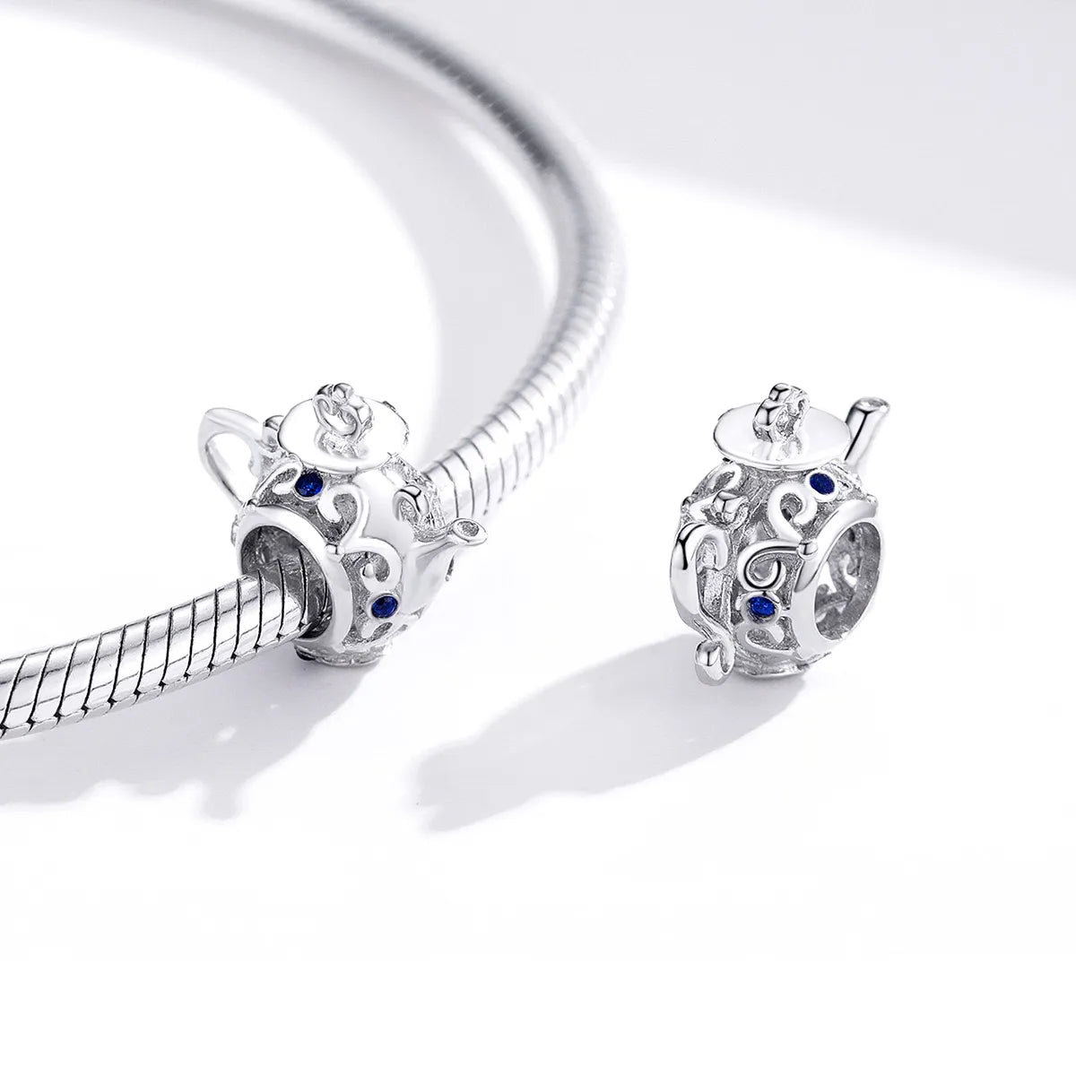دلاية إبريق شاي فضة 925 مزينة بأحجار زرقاء