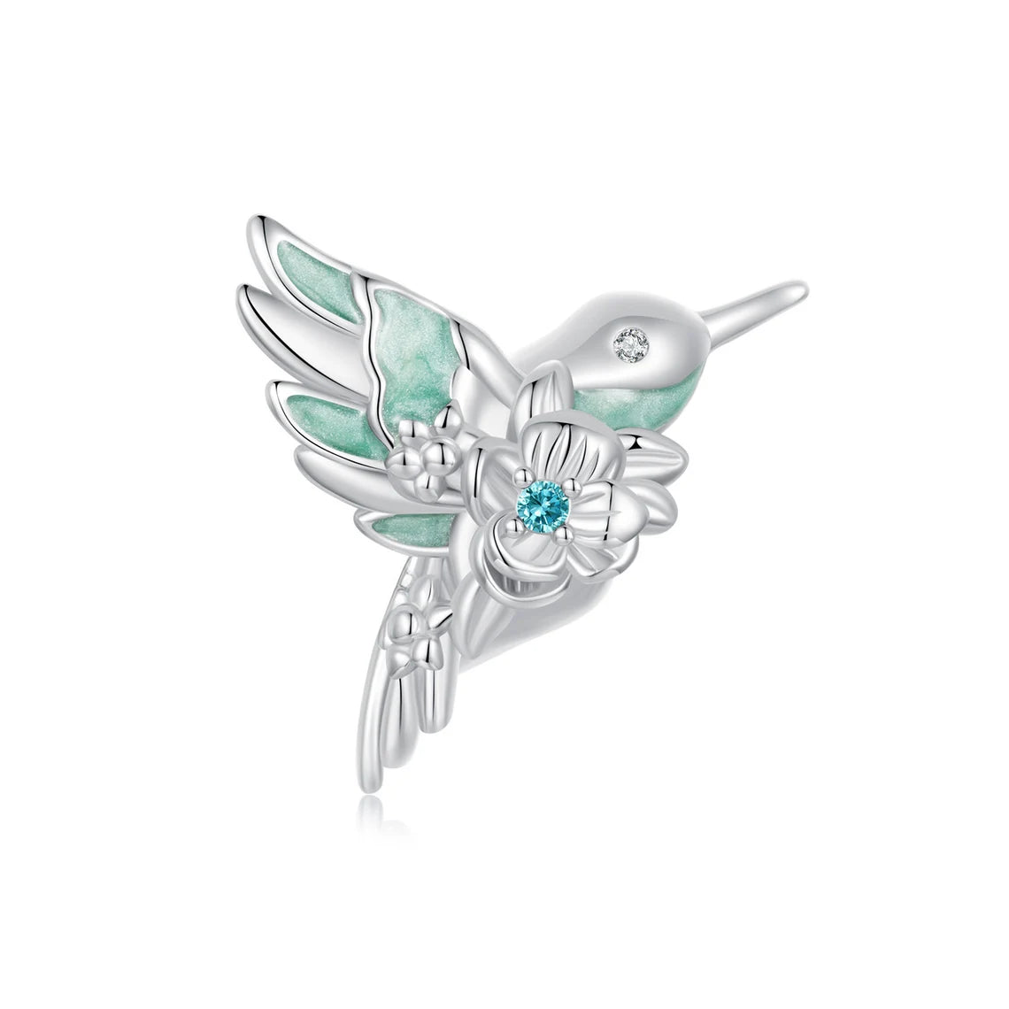 دلاية طائر رقيق فضة 925 بحجر أخضر فاتح