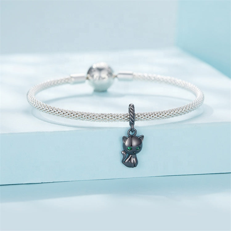دلاية قطة صغيرة بعيون لامعة فضة عيار 925