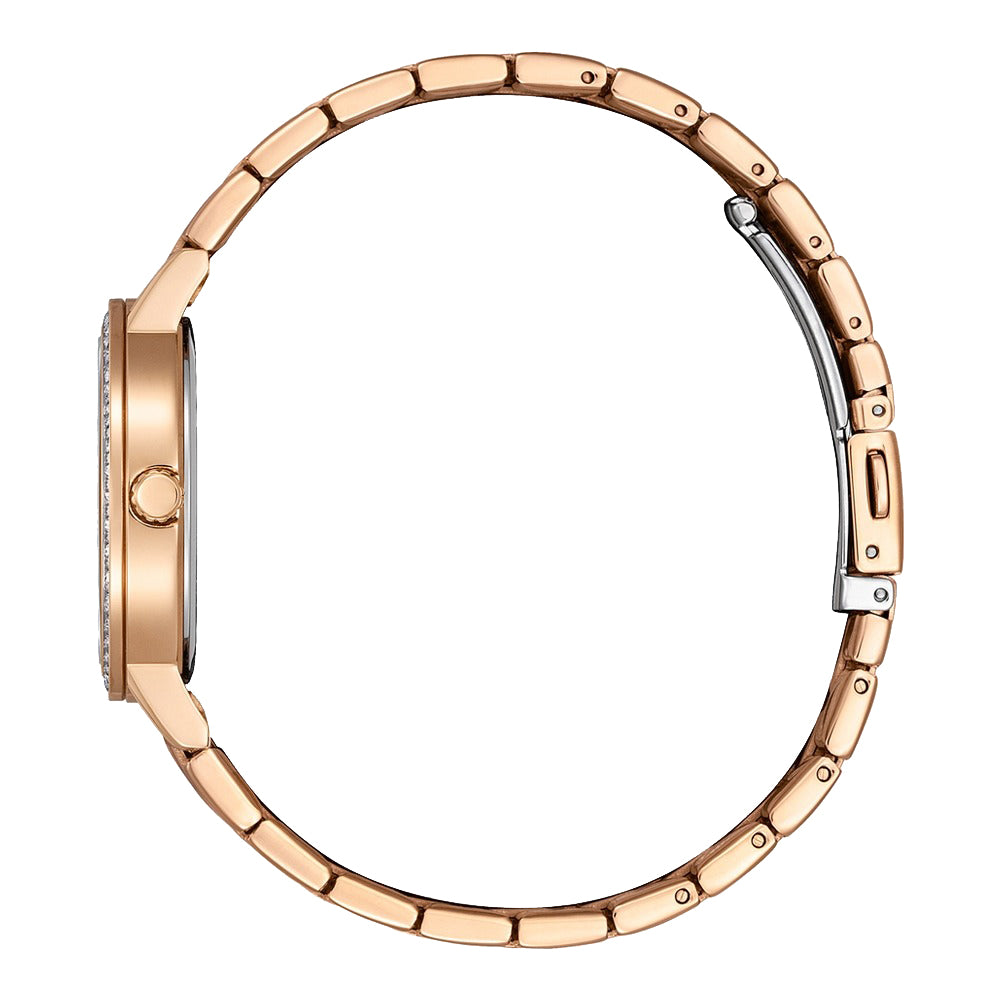 يأتي السوار مصنوعًا من الستانلس ستيل بلون ذهبي وردي جذاب يمنح الساعة مظهرًا أنيقًا ومعاصرًا يناسب الإطلالات اليومية والرسمية على حد سواء.
