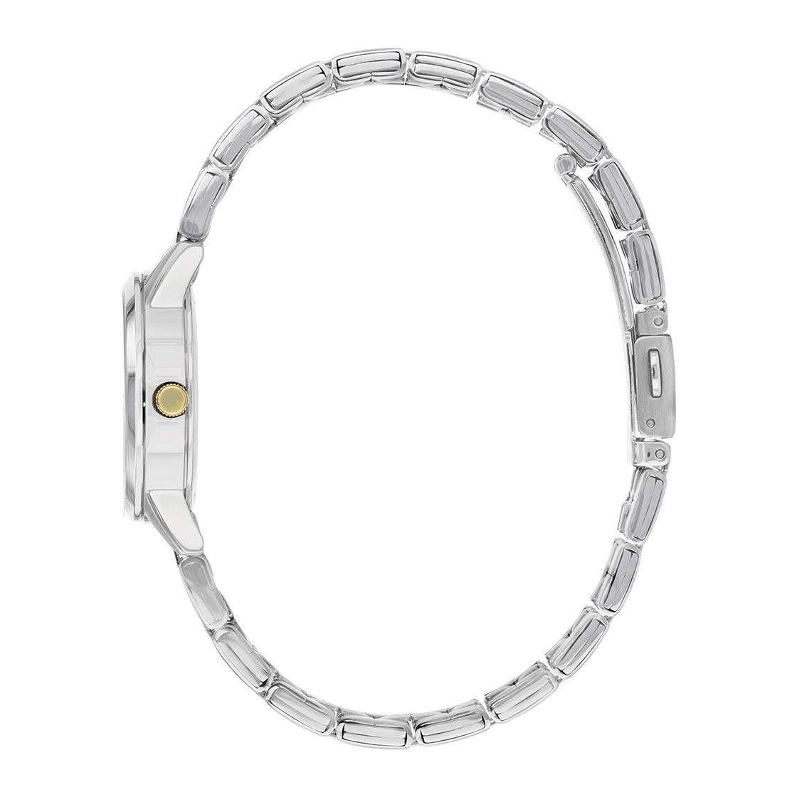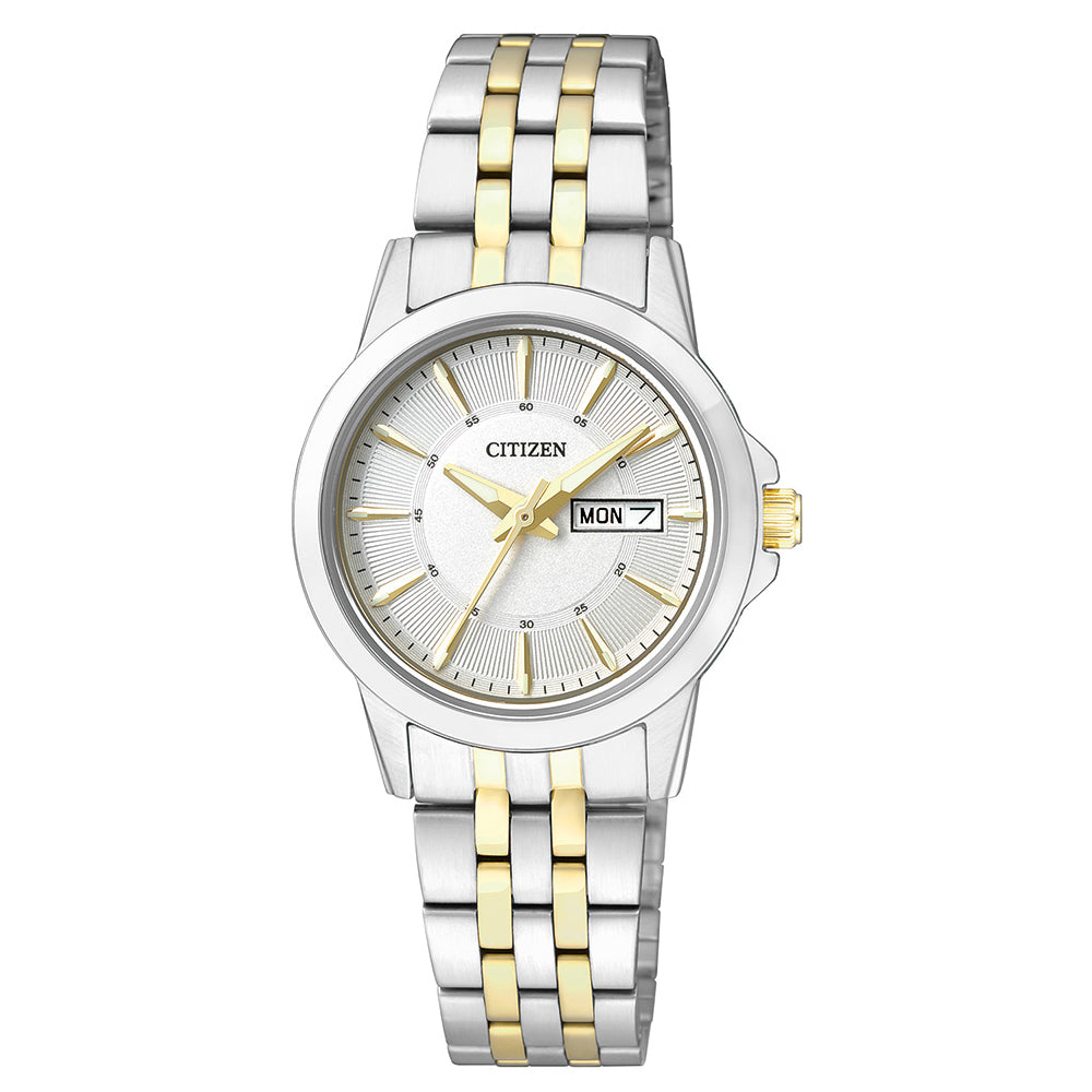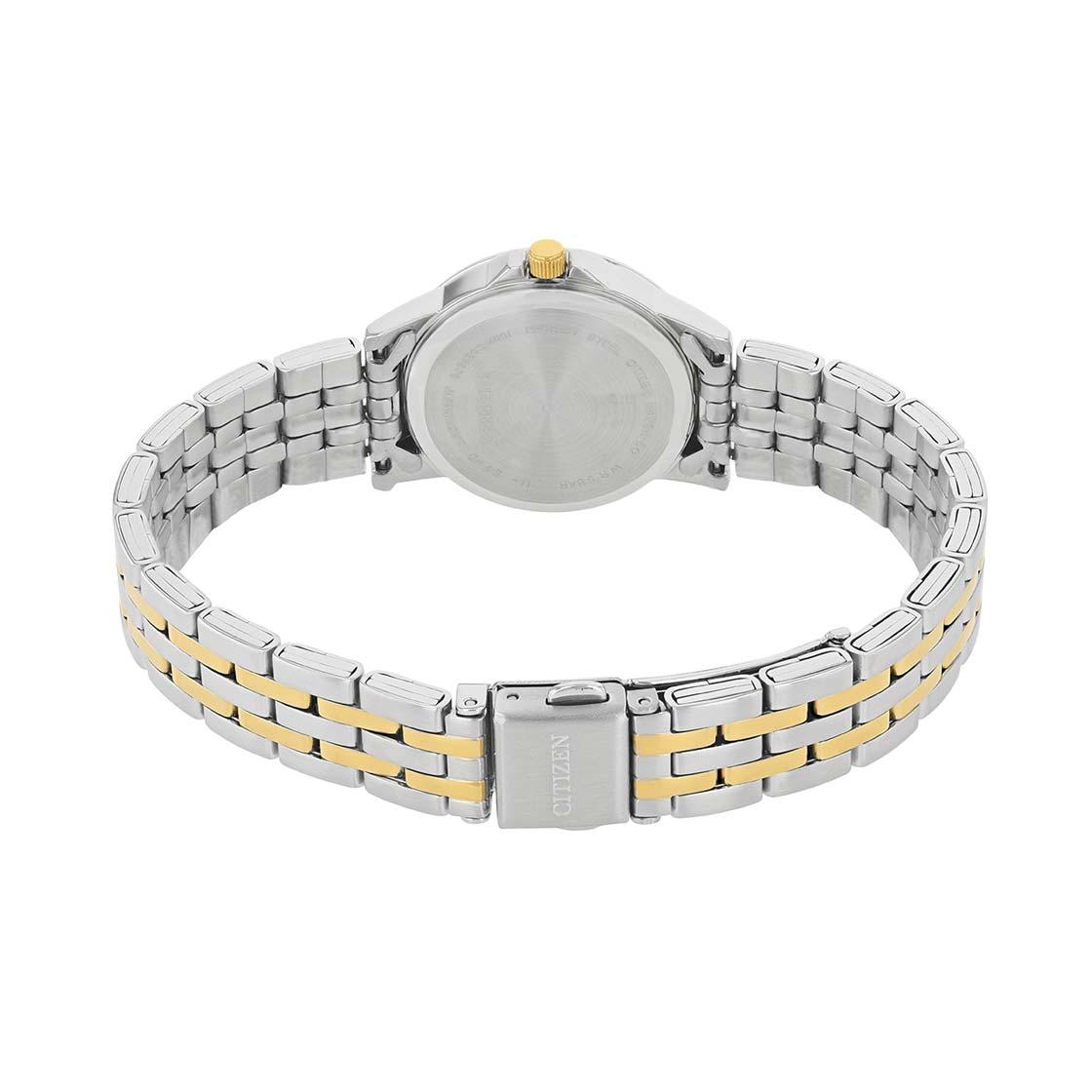 ساعة سيتيزن كوارتز للنساء بسوار من الستانلس ستيل بلون ذهبي وفضي وميناء فضي EQ0608-55A