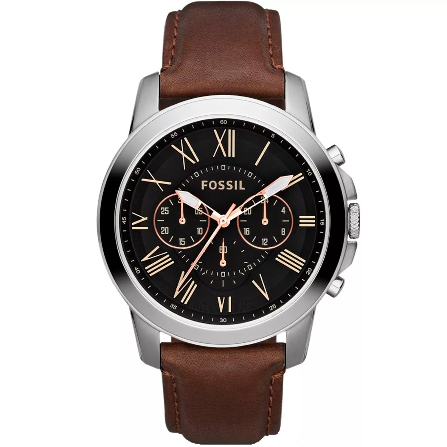 ساعة فوسيل كوارتز للرجال بسوار جلدي بني وميناء أسود FS4813