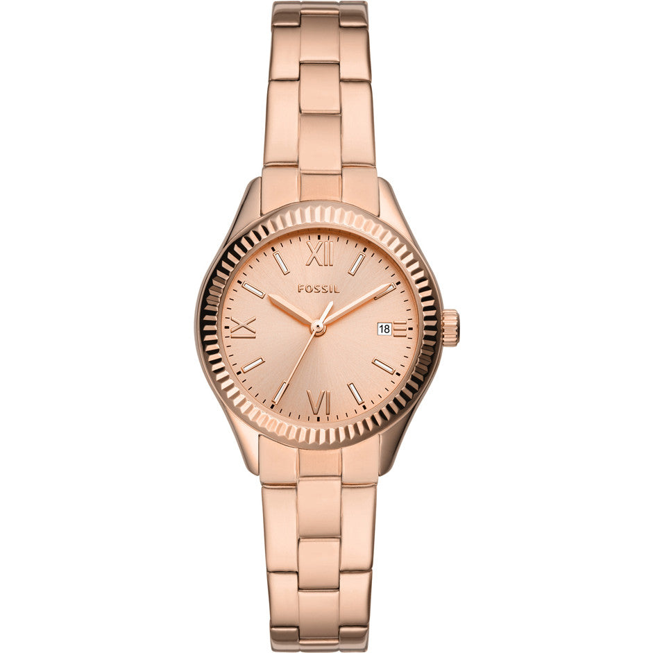 ساعة فوسيل كوارتز للنساء بسوار من الستانلس ستيل الذهبي الوردي وميناء ذهبي وردي - BQ3639