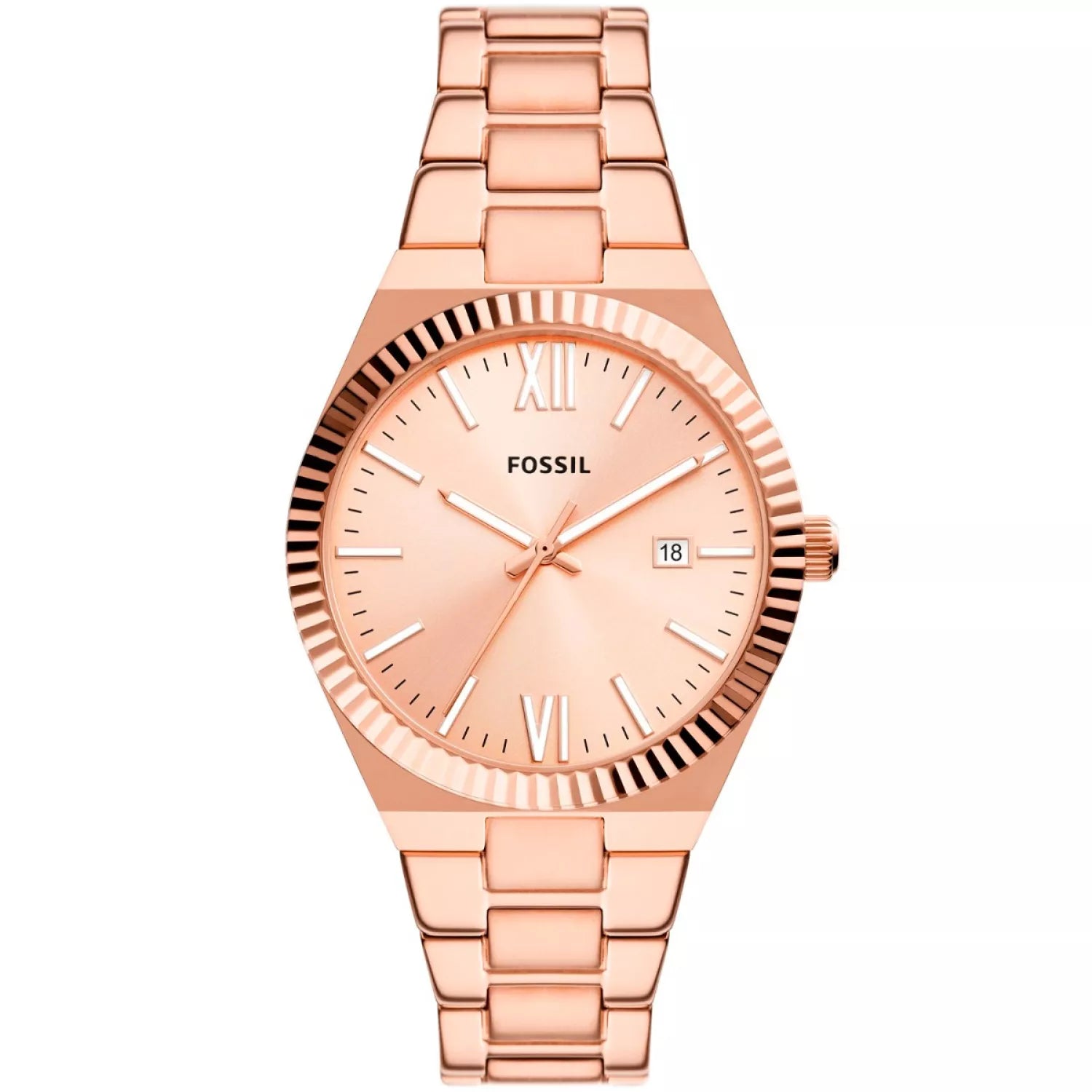 ساعة فوسيل كوارتز للنساء بسوار من الستانلس ستيل باللون الذهبي الوردي وميناء ذهبي وردي ES5258