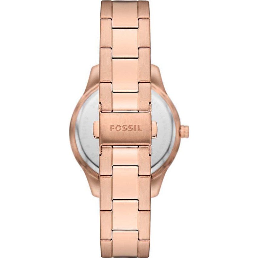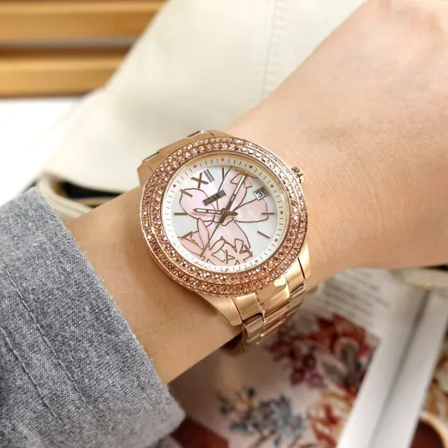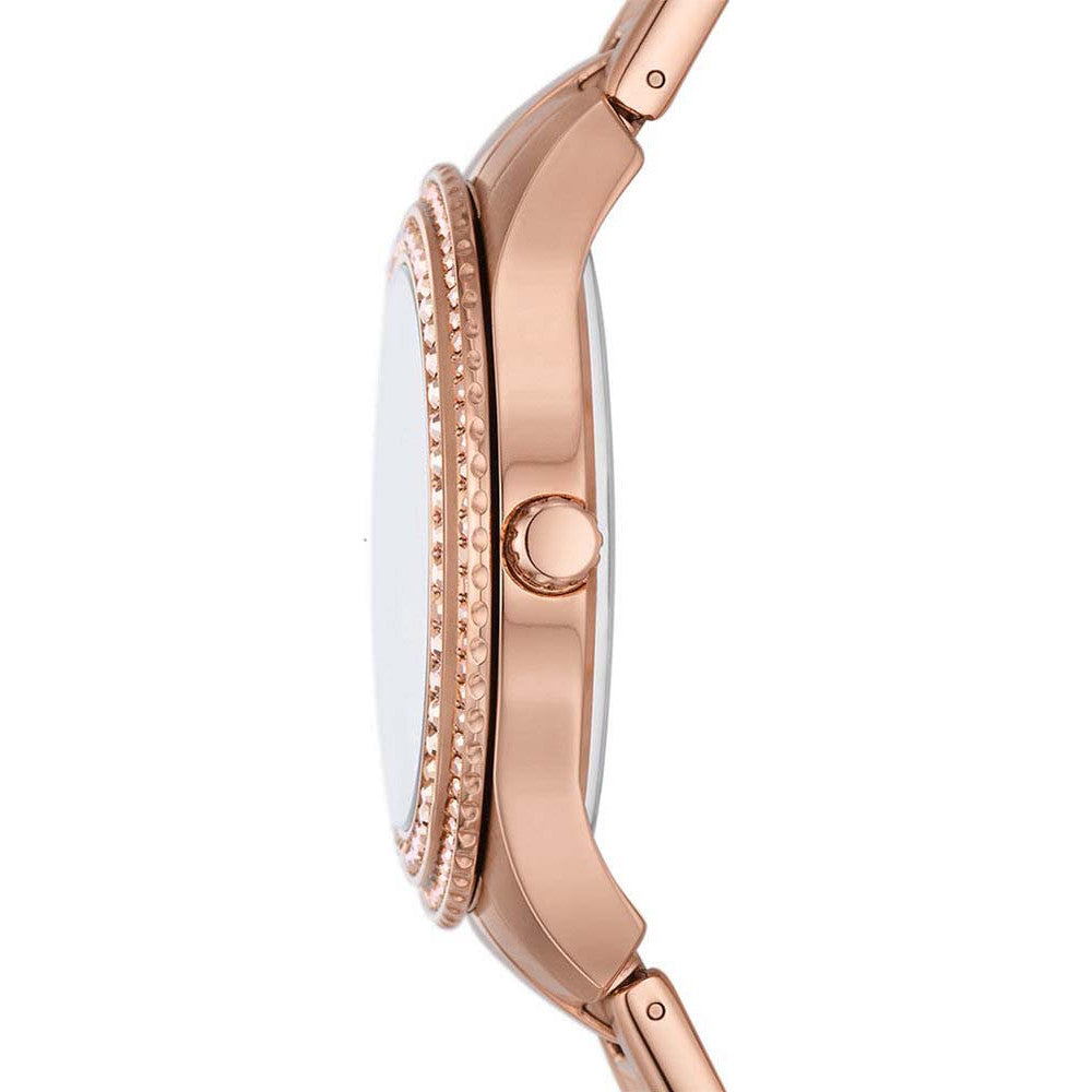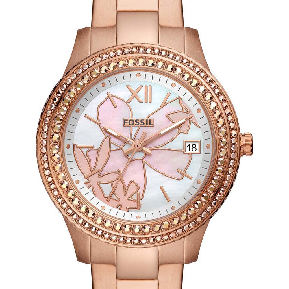 ساعة فوسيل كوارتز للنساء بسوار من الستانلس ستيل باللون الذهبي الوردي وميناء مزين بزهور ES5192