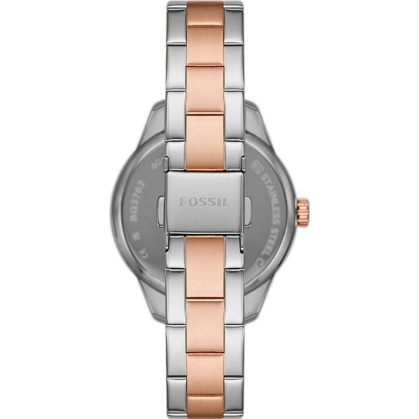 ساعة فوسيل كوارتز للنساء بسوار من الستانلس ستيل بلون ذهبي وردي وفضي وميناء فضي - BQ3761