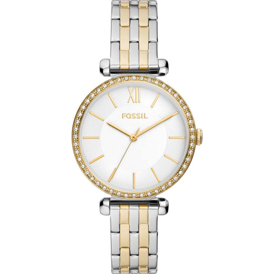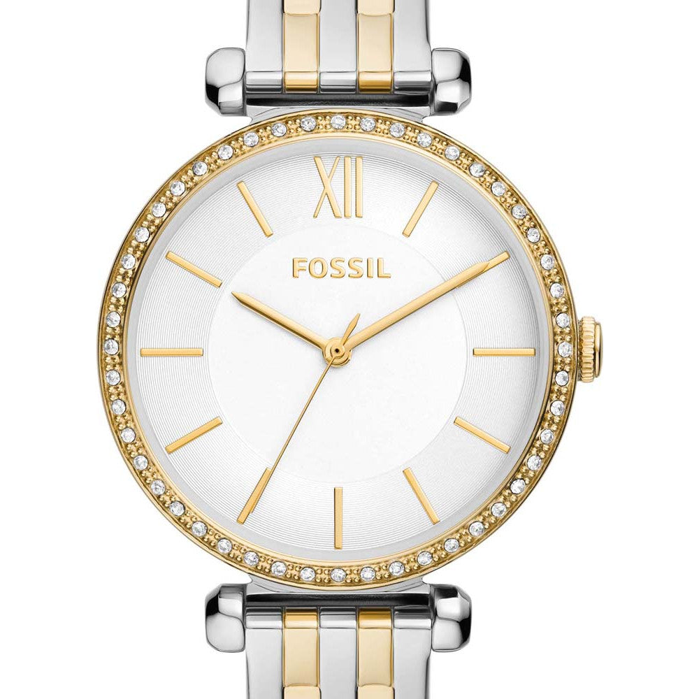 ساعة فوسيل كوارتز للنساء بسوار من الستانلس ستيل بلون ذهبي وفضي وميناء أبيض BQ3902