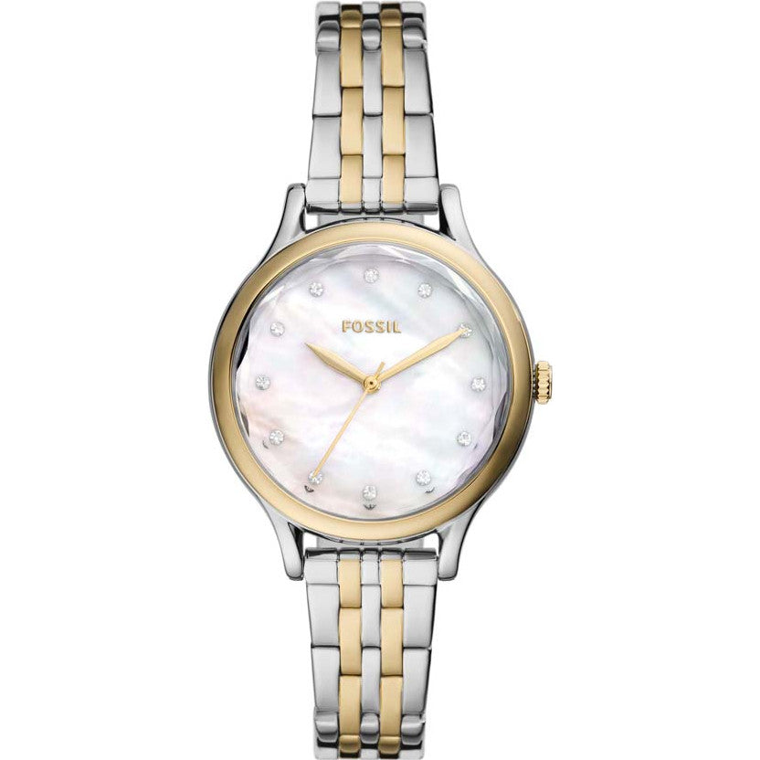 ساعة فوسيل كوارتز للنساء بسوار من الستانلس ستيل بلون ذهبي وفضي وميناء من عرق اللؤلؤ - BQ3864