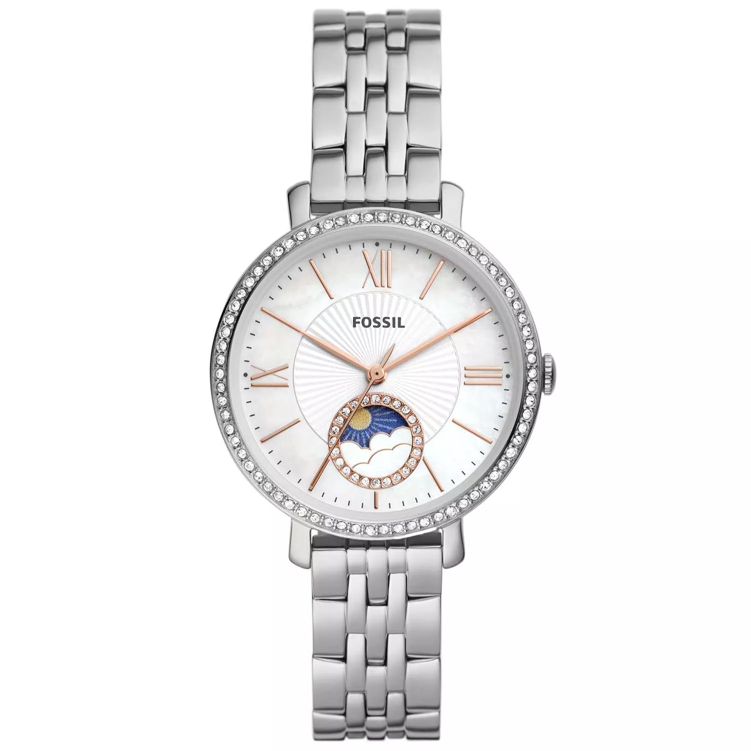 ساعة فوسيل للنساء بسوار من الستانلس ستيل وميناء صدفي بميزة مراحل القمر ES5164
