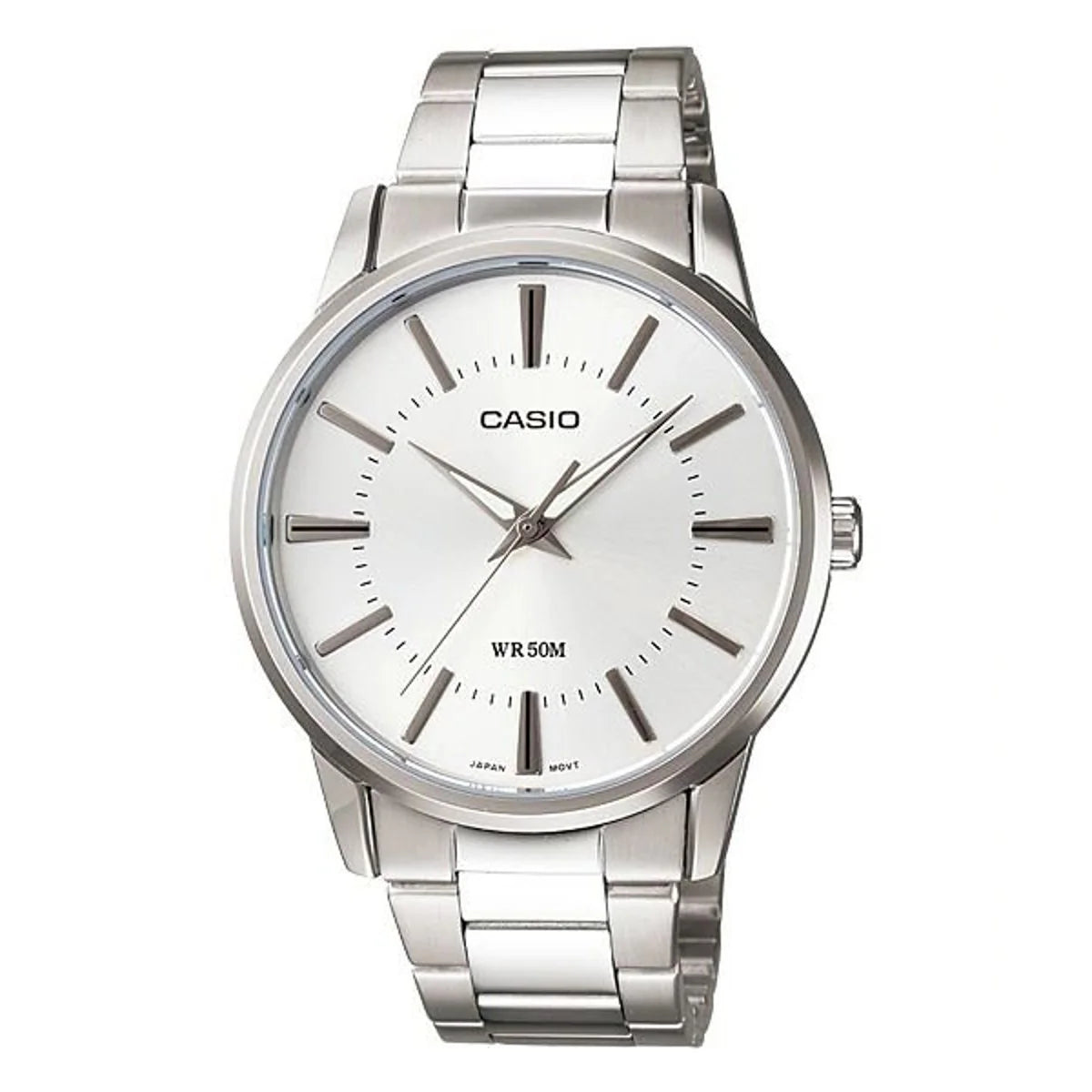 ساعة كاسيو رجالي بسوار فضي موديل MTP-1303D-7AVDF تجمع بين البساطة الكلاسيكية والاعتمادية اليومية في تصميم أنيق يناسب جميع الإطلالات. تأتي بـ سوار ستانلس ستيل فضي يمنحها مظهرًا رسميًا متوازنًا مع متانة عالية للاستخدام المستمر.