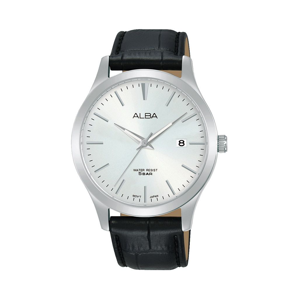 ساعة يد ألبا الرجالي موديل تجمع بين التصميم الكلاسيكي والأناقة العصرية. تأتي الساعة بسوار جلد أسود عالي الجودة يمنحك الراحة والفخامة، مع علبة ستانلس ستيل متينة وميناء فضي أنيق يتميز بمؤشرات واضحة ونافذة لعرض التاريخ عند موضع الساعة الثالثة.