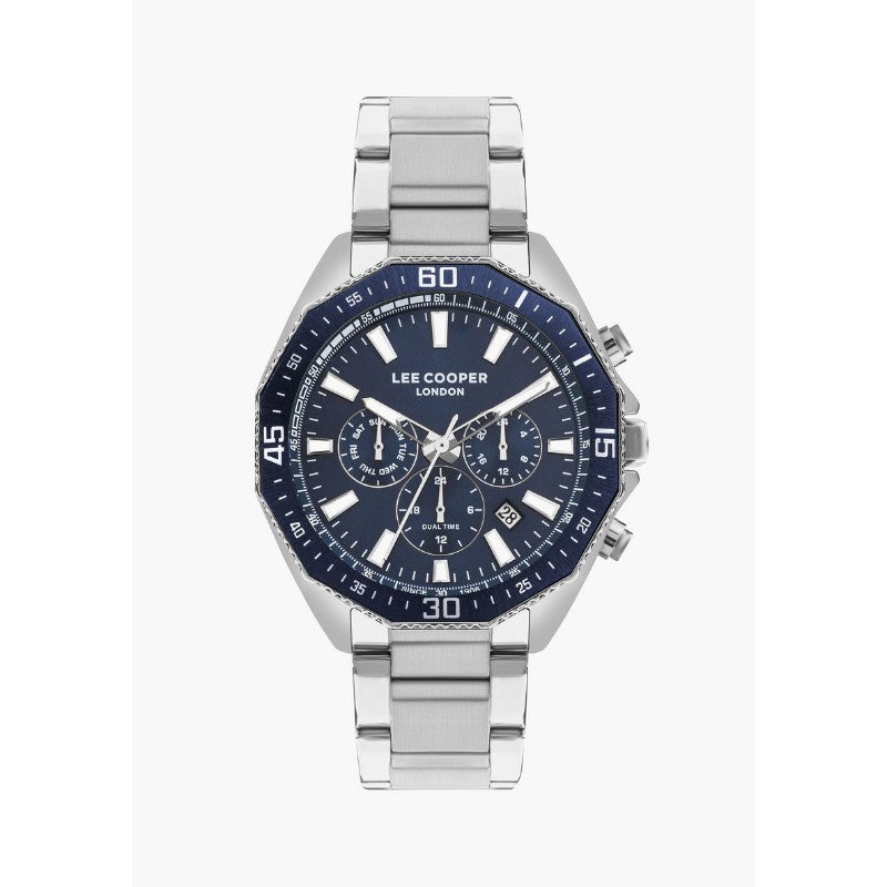تصميم عصري وقوي من لي كوبر يجمع بين الأناقة العملية والتفاصيل الدقيقة، تأتي الساعة بسوار معدني من الستانلس ستيل باللون الفضي ولميناء كحلي عميق يبرز المؤشرات والعقارب بشكل واضح. تحتوي على ثلاث عدادات فرعية تعرض اليوم والتاريخ والساعة بنظام 24 ساعة، وتعتمد على نظام عرض أنالوج بالكامل بالعقارب. الإطار الخارجي مثمّن الشكل بلون كحلي مزوّد بتفاصيل دقيقة تضيف طابعًا رياضيًا راقيًا. تعمل بحركة كوارتز دقيقة وتتميز بزجاج معدني مقاوم للخدش. خيار مثالي لكل رجل يقدّر التوازن بين المظهر الراقي والأداء العملي.
