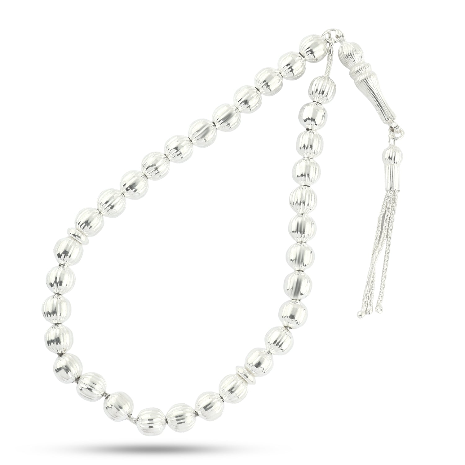 سبحة فضة عيار 999 حبات دائرية بنقشة ناعمة