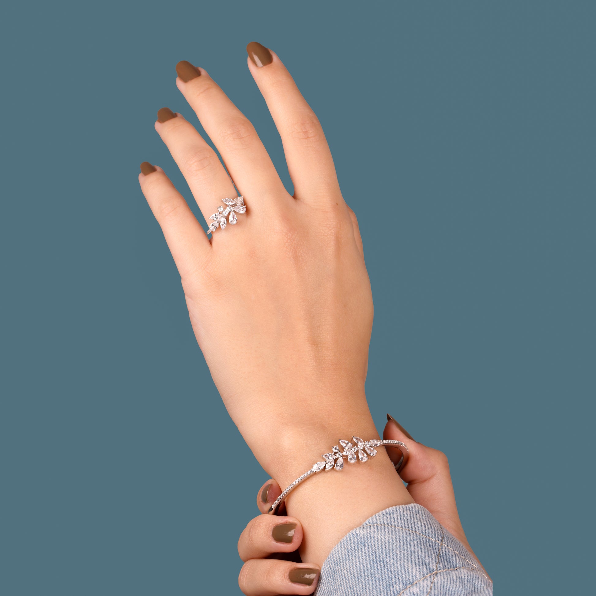 استمتعي بإطلالة أنيقة تعبّر عن الطبيعة والفخامة مع طقم فضة 925 إسورة وخاتم بتصميم أوراق من فتحي إبراهيم، قطعة فنية تجمع بين الجمال والرقي في تناغم رائع.