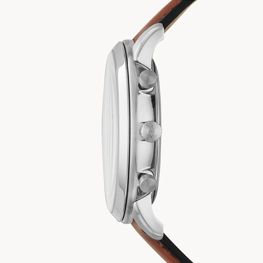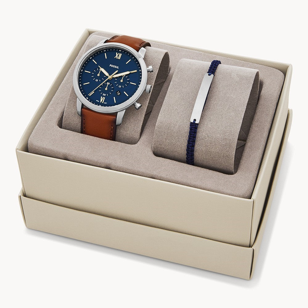 طقم فوسيل للرجال ساعة كوارتز بسوار جلدي بني وميناء أزرق مع سوار إضافي FS5708SET