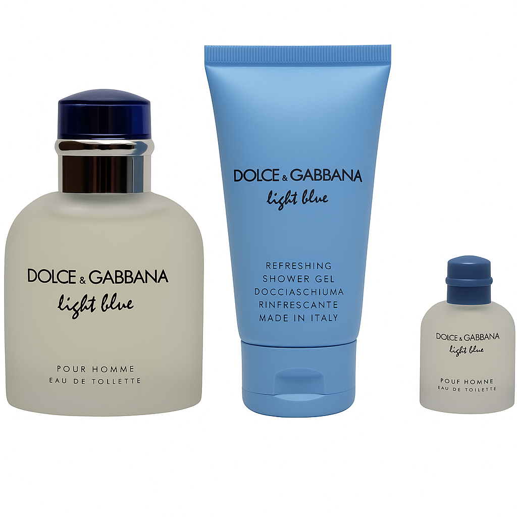 عطر لايت بلو للرجال من دولتشي آند غابانا – أو دو تواليت 75 مل مع عينة 4.5 مل وجل استحمام 50 مل