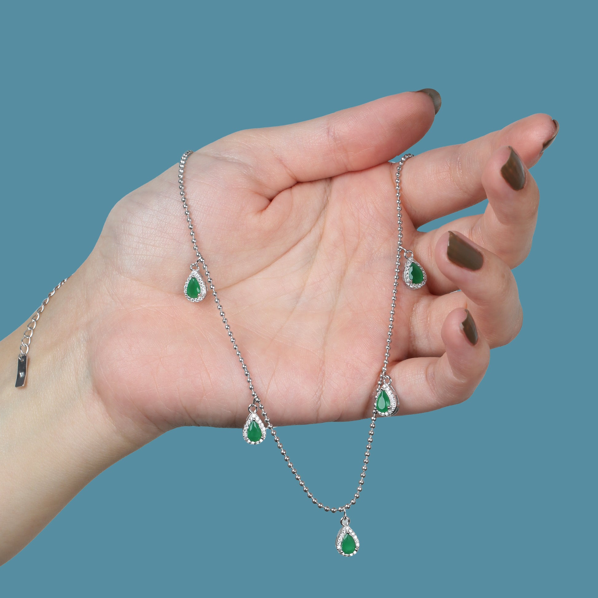 عقد اللوزة فضة عيار 925 مرصع بالزركون الاخضر
