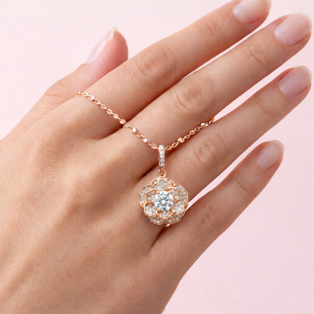 عقد "زهرة مرصعة بفصوص لامعة" فضة عيار 925 – مطلي ذهب