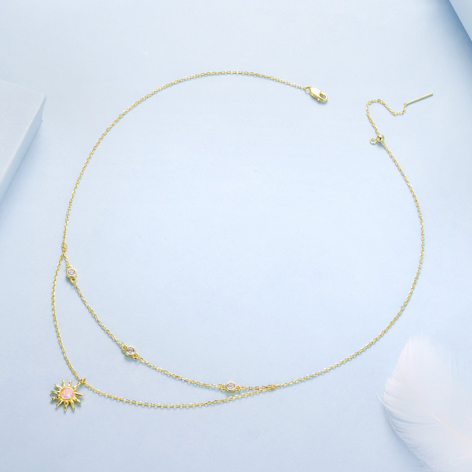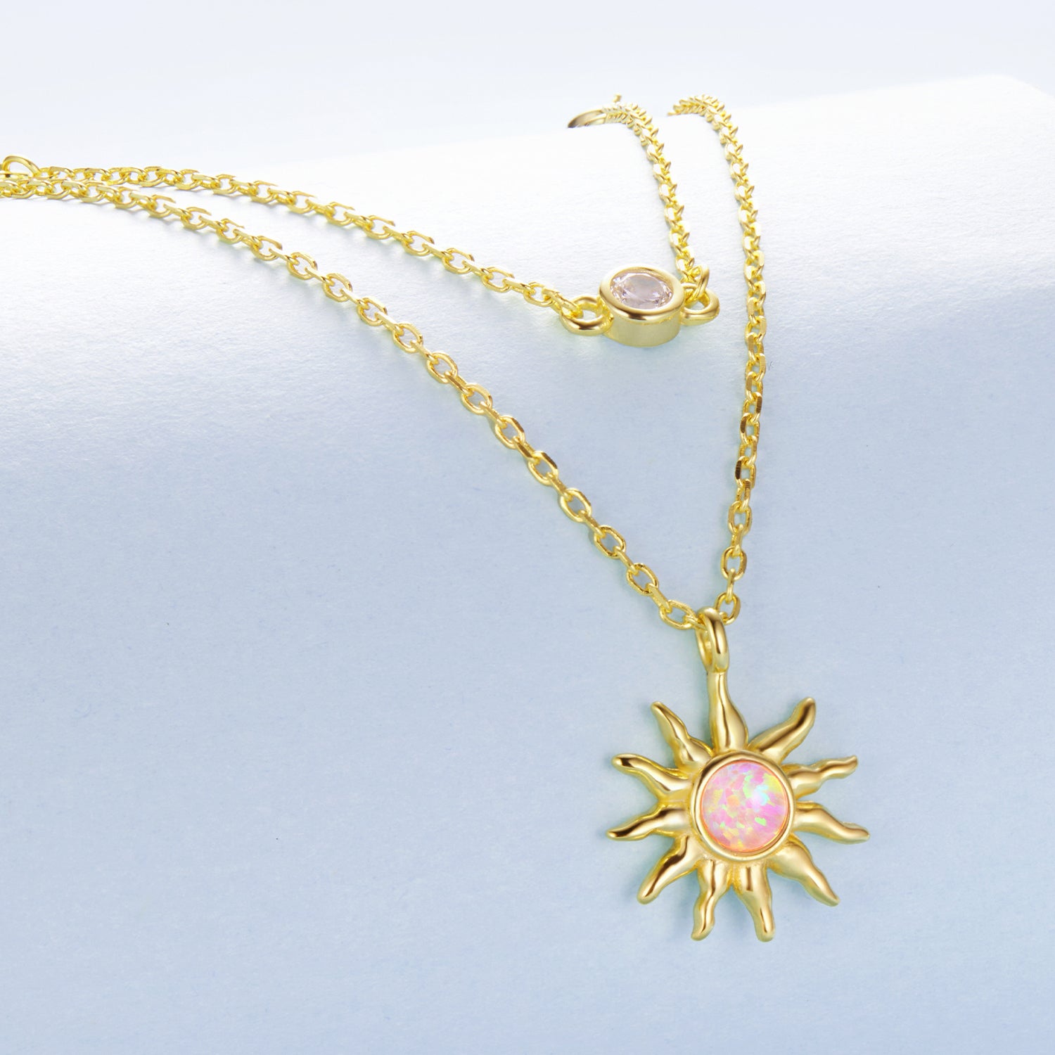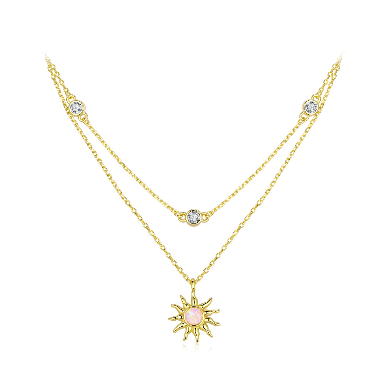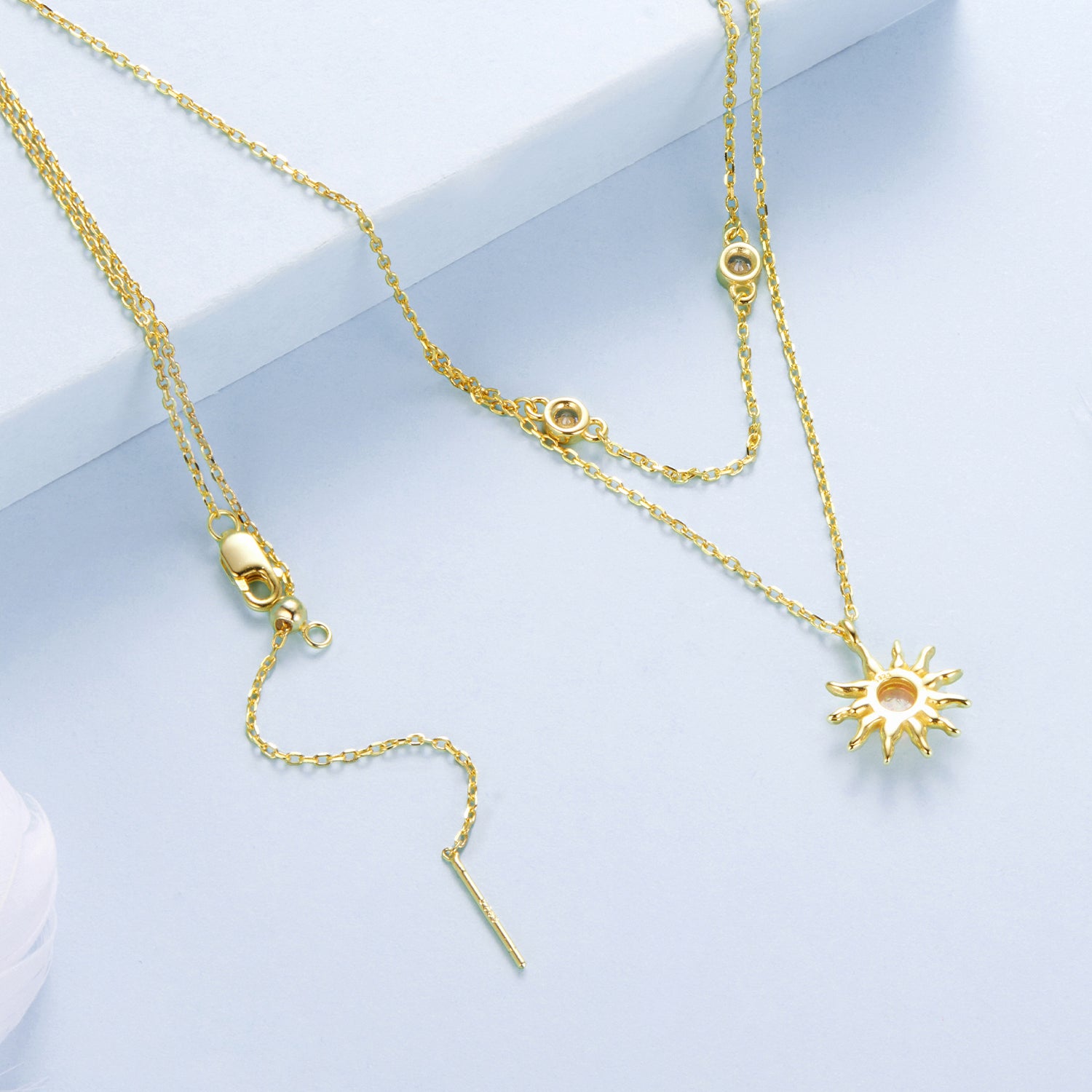 عقد شمس مطلي ذهب أنيق بطبقتين فضة عيار 925