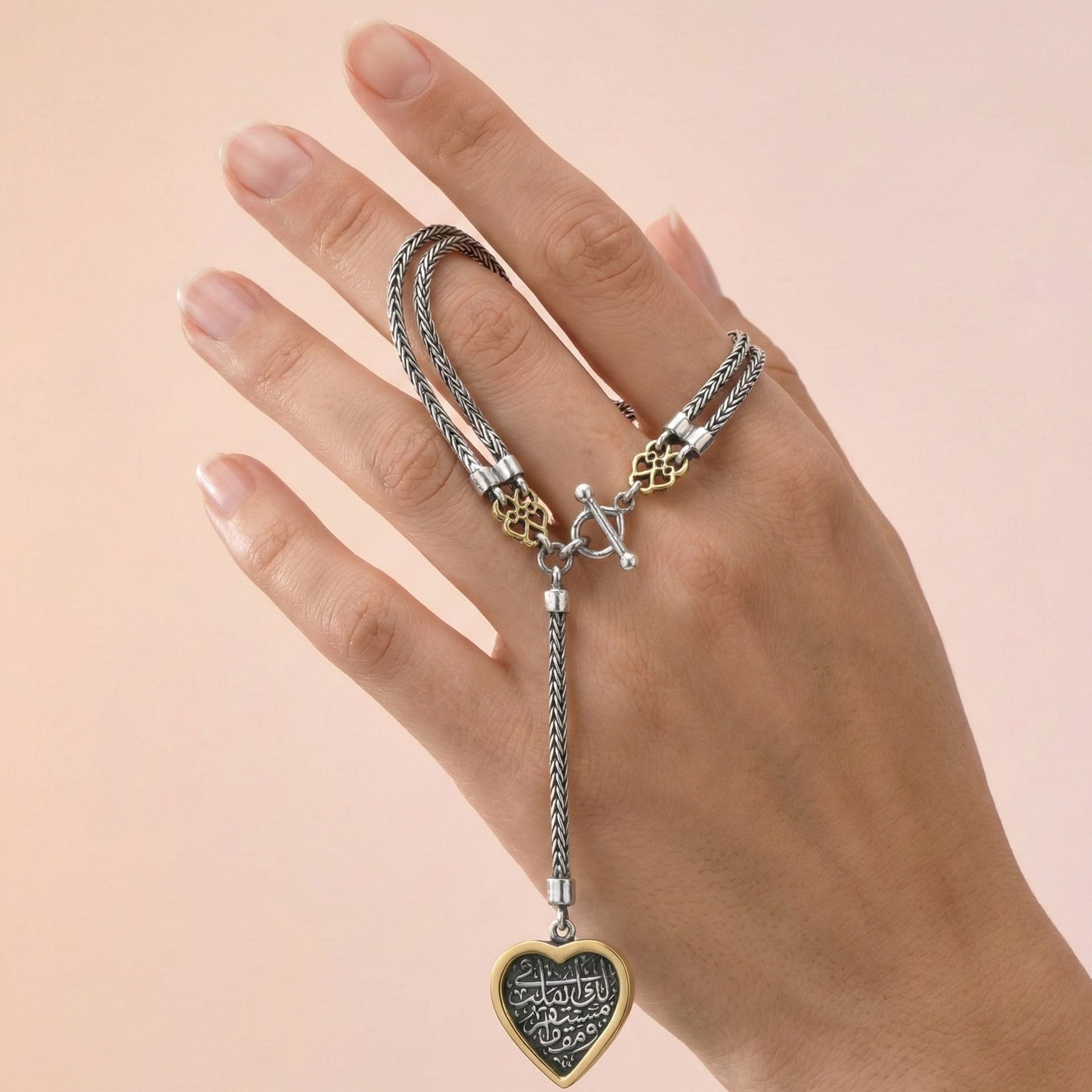تصميم القلب يضيف لمسة إنسانية دافئة، بينما تأتي العبارة المحفورة بخط واضح ومتوازن يعكس إحساس القرب والمودة دون مبالغة. مناسب للارتداء اليومي كما ينسجم بسهولة مع مختلف الإطلالات، سواء الكلاسيكية أو العصرية.