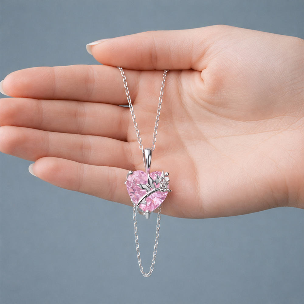 تألّقي برومانسية حالمة مع عقد فضة 925 قلب بفراشة من فتحي إبراهيم، قطعة تجمع بين الأنوثة والرقة في تصميم يعكس الجمال الطبيعي بكل تفاصيله. يأتي العقد بتصميم قلب وردي ناعم يرمز للحب والمشاعر الدافئة، تتوسطه فراشة رقيقة تحاكي الحرية والجمال، وزهرة مرصّعة بفصوص شفافة لامعة تضيف لمسة من البريق الفاخر والنعومة.