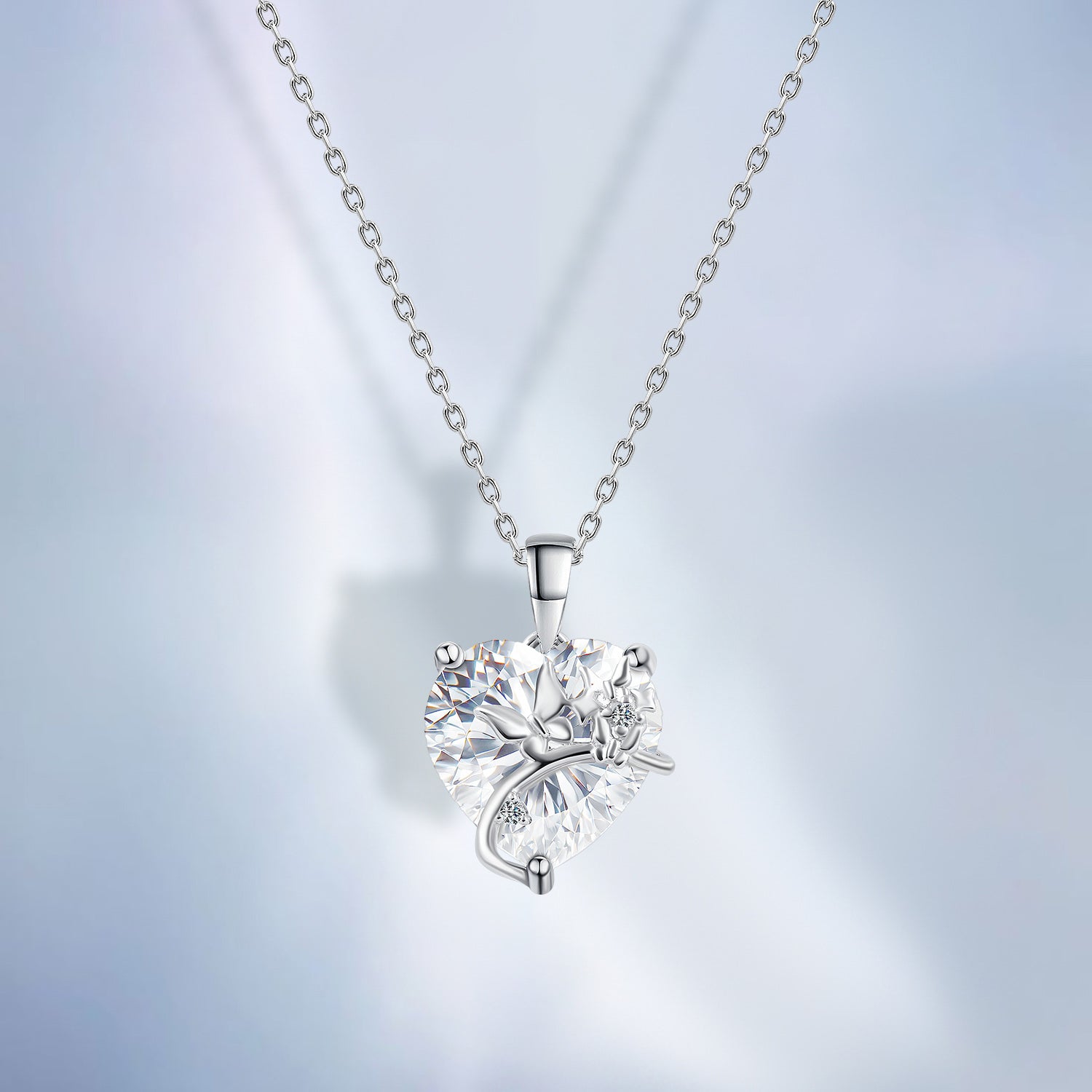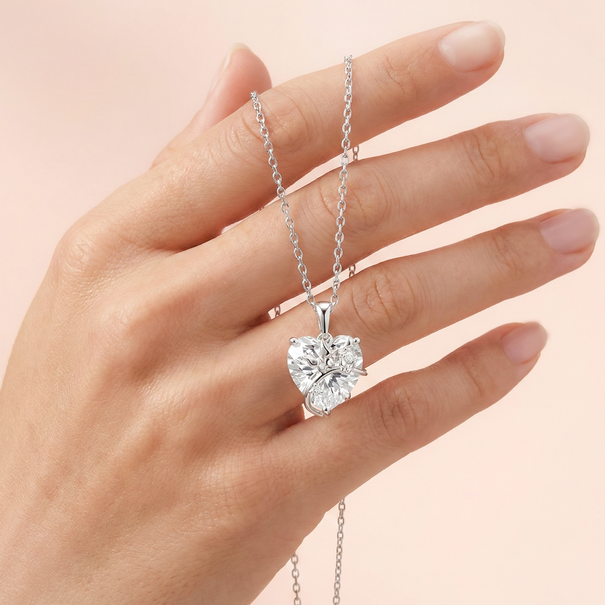 عقد فضة 925 قلب مرصّع بفصوص شفافة