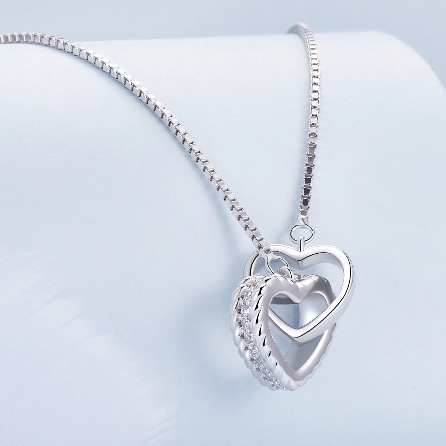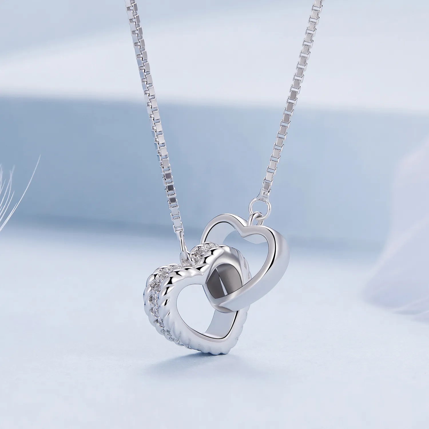 عقد قلبين متداخلين مرصع فضة عيار 925