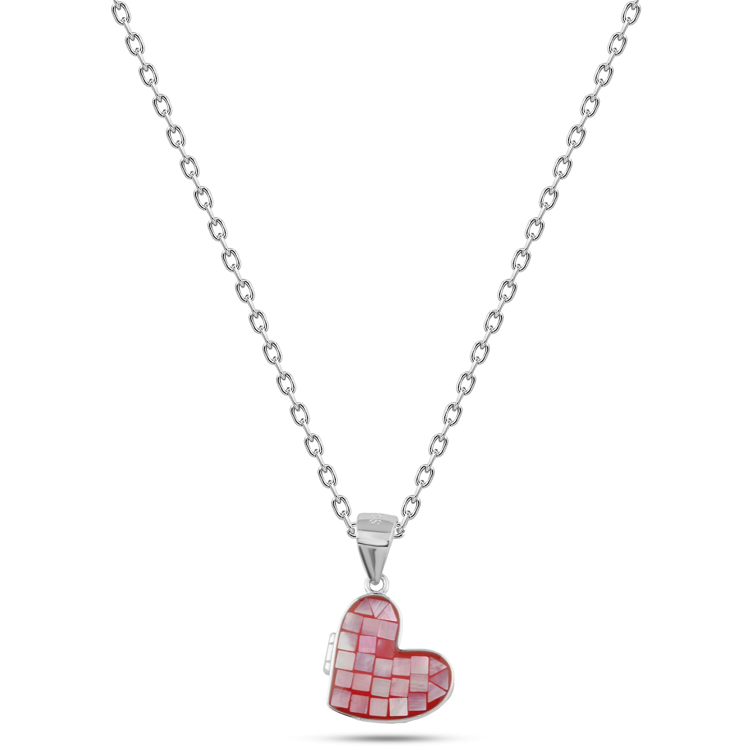 يتميّز العقد بتصميم قلب رقيق مصنوع من فضة عيار 925، مزين بلمسات لؤلؤية حمراء تضيف إليه مظهرًا دافئًا ومفعمًا بالمشاعر.