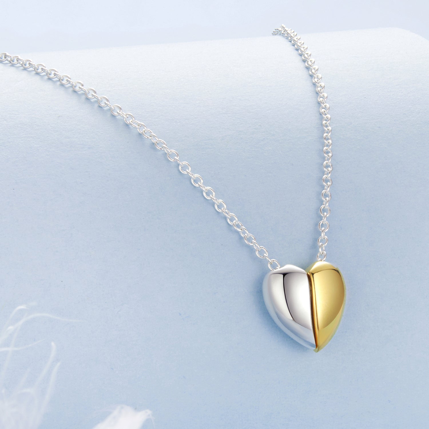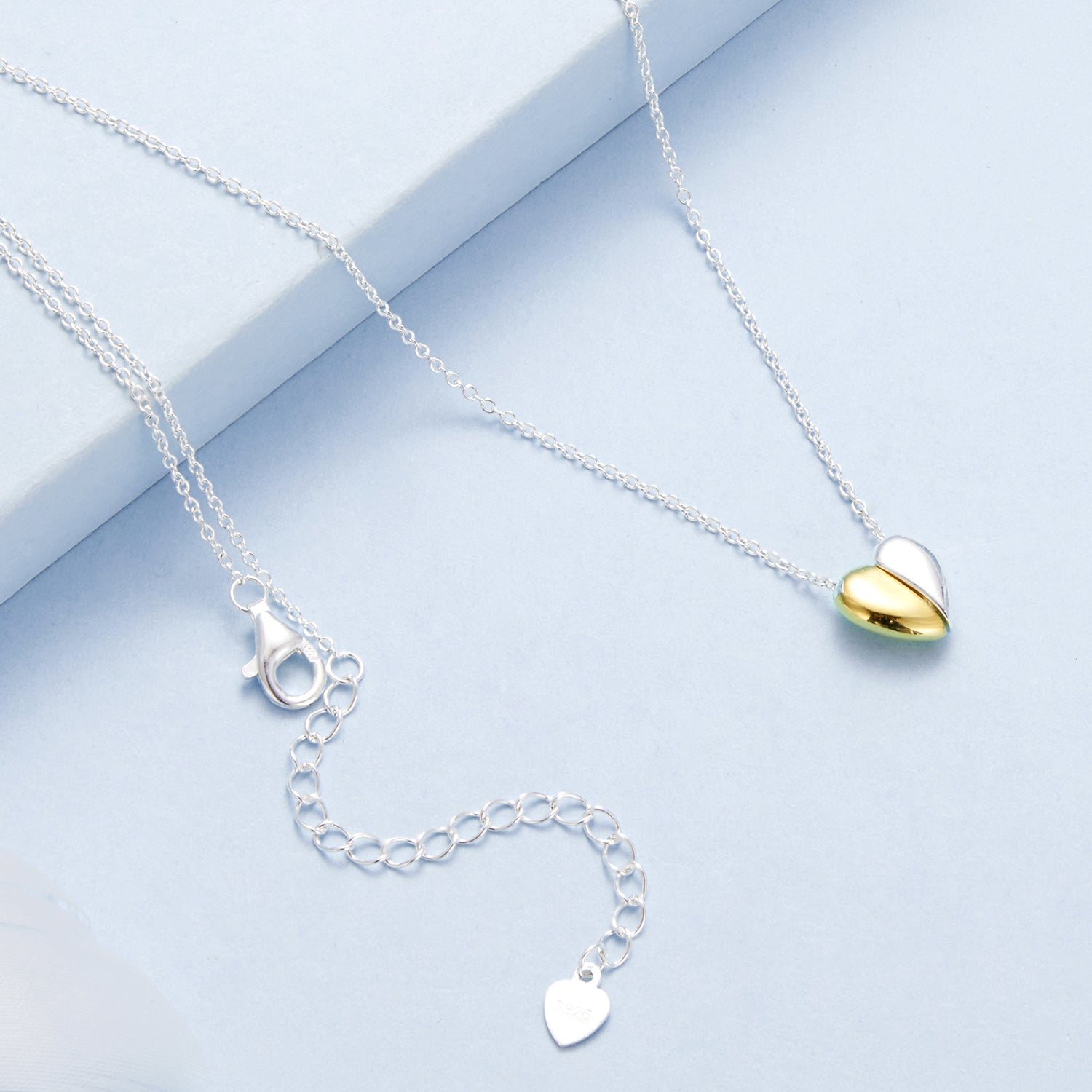 عقد قلب نصف فضي ونصف مطلي ذهب فضة عيار 925