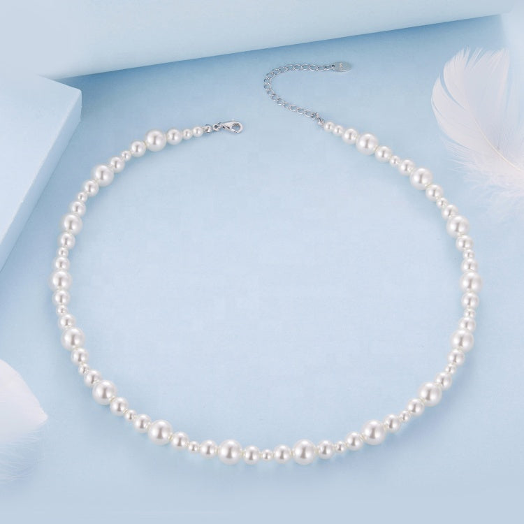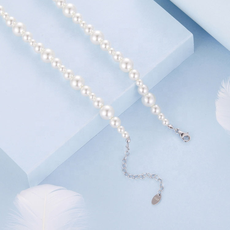 عقد لؤلؤ أبيض كلاسيك فضة عيار 925