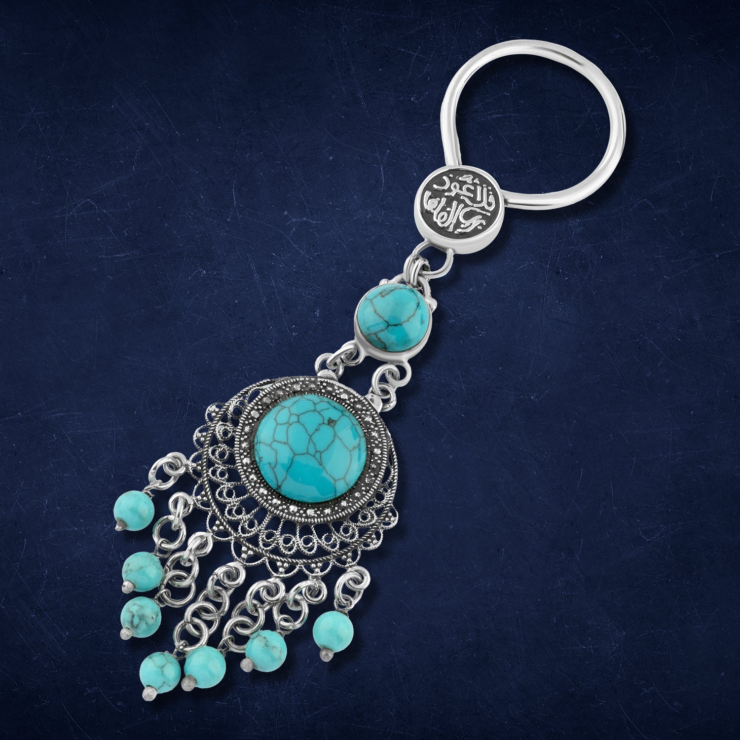ميدالية مفاتيح"قل أعوذ برب الفلق" فضة بحجر الفيروز