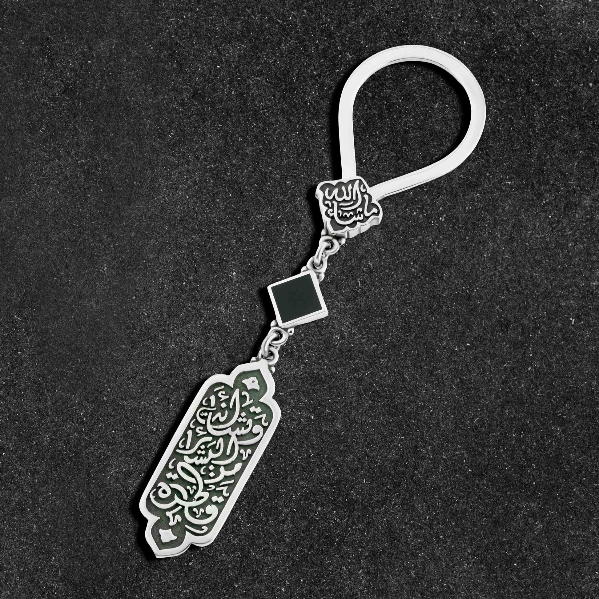 ميدالية مفاتيح "البشائر" فضة عيار 800 بحجر أونيكس