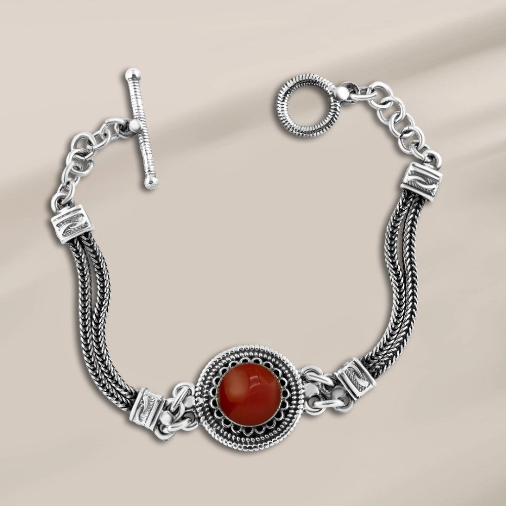 انسيال فضة مصري عيار 925، متوج بحجر العقيق الفاخر، الذي يضفي لمسة من الجمال والتميّز على التصميم. يتميز الانسيال بتفاصيله الدقيقة وحرفيته العالية، حيث يعكس الفضة المصرية ذات الجودة الممتازة. حجر العقيق يضفي عليه سحرًا خاصًا ويمنحه طابعًا فريدًا يعكس الأناقة والذوق الرفيع. يُعد هذا الانسيال خيارًا مثاليًا لمن يقدرون الإكسسوارات الفاخرة التي تجمع بين الفخامة والجمال الطبيعي