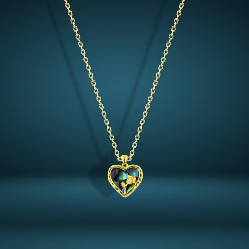 ارتقي بإطلالتك مع عقد قلب وزهرة من فضة عيار 925 مطلي ذهب 18k – الاختيار الأمثل ضمن تشكيلة مجوهرات نسائية أنيقة من فتحي إبراهيم.