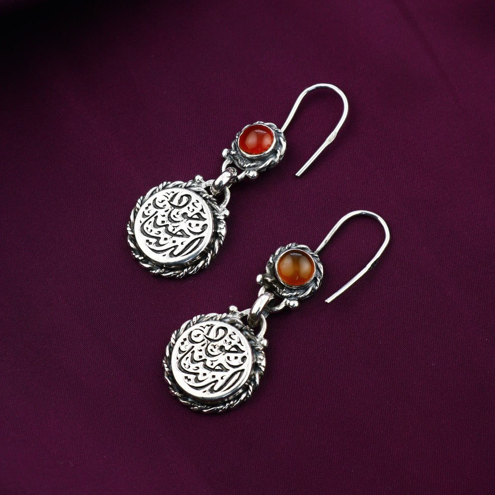 حلق فضه مصري حريمي عيار 925 متوج بحجر عقيق بني,صناعه يدوي (وجودك جنة الدنيا)