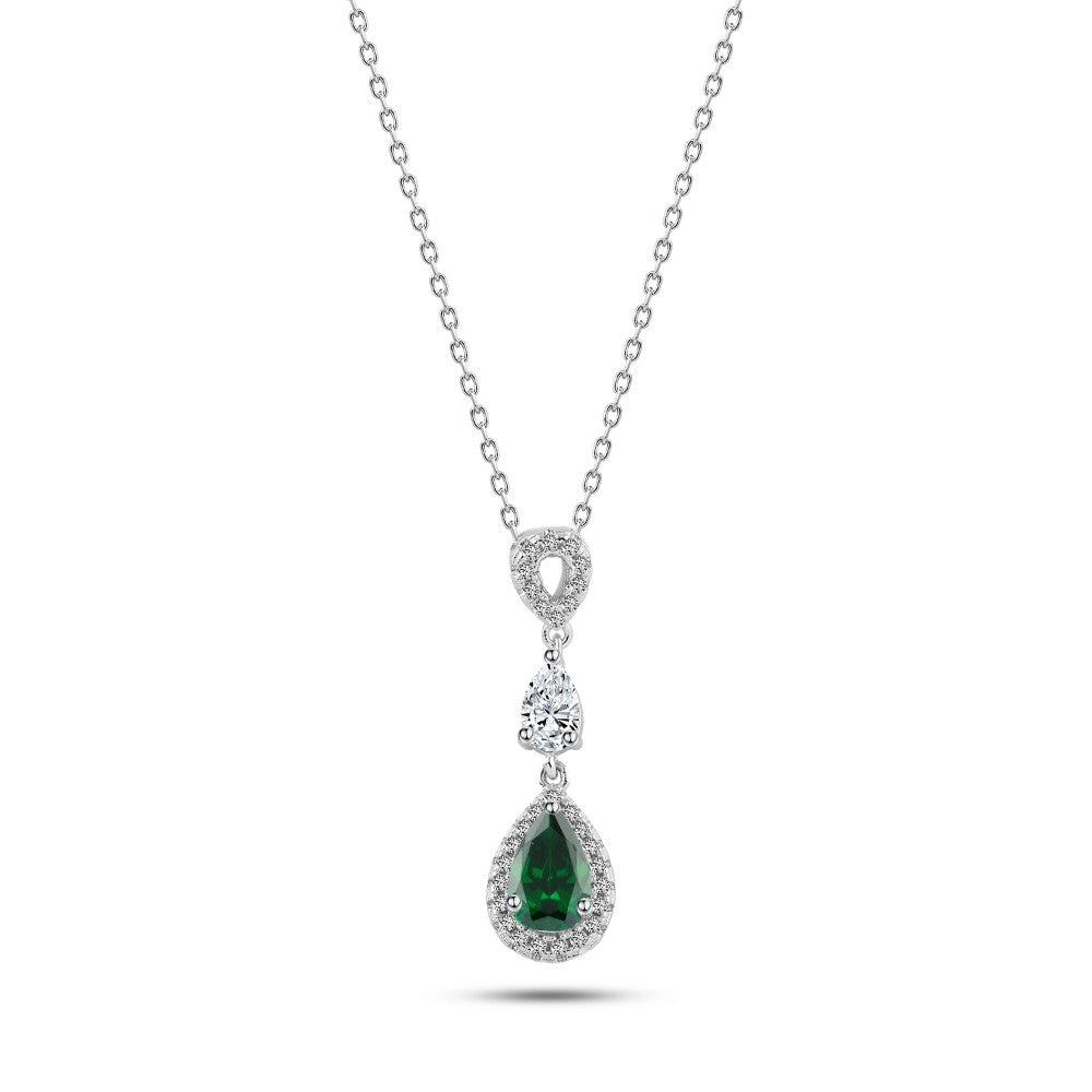 عقد فضة عيار 925 بفصوص زركون أخضر