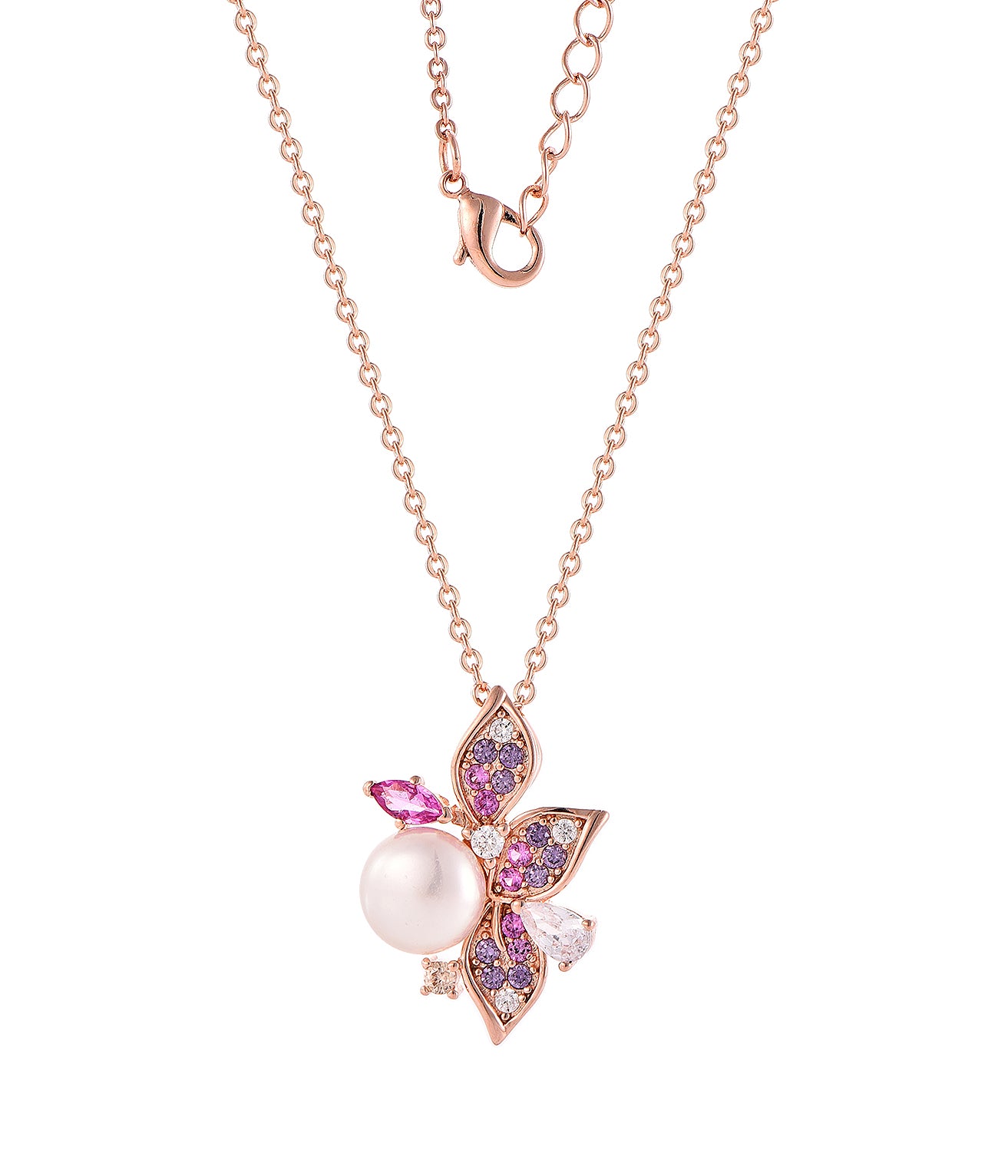 عقد فضة عيار 925 باللؤلؤ واحجار الزركون