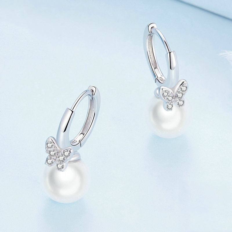حلق فضة عيار 925 علي شكل فراشة ولولي